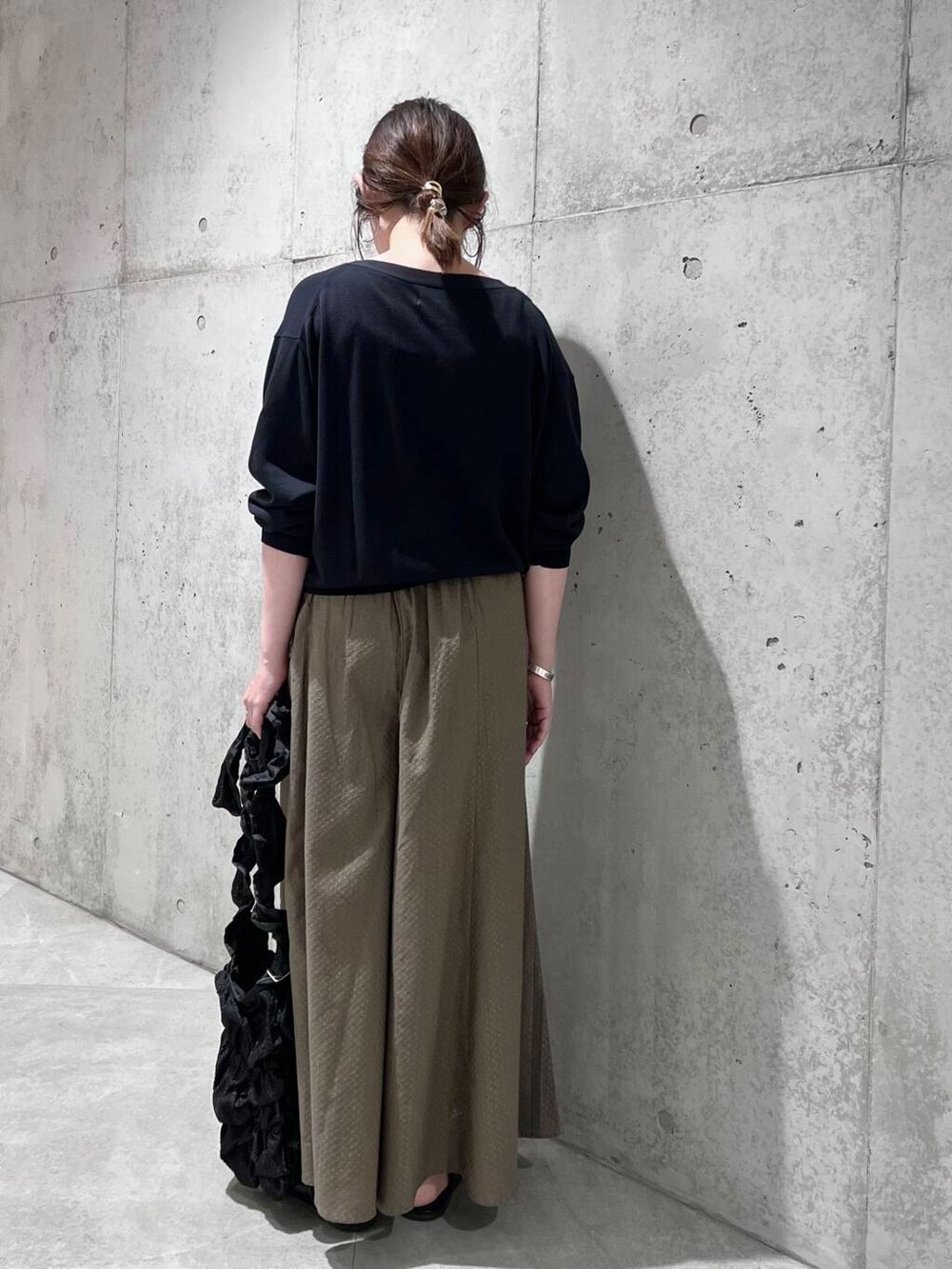今回は、ジャガード柄がアクセントになった、ワイドパンツと合わせてみました。