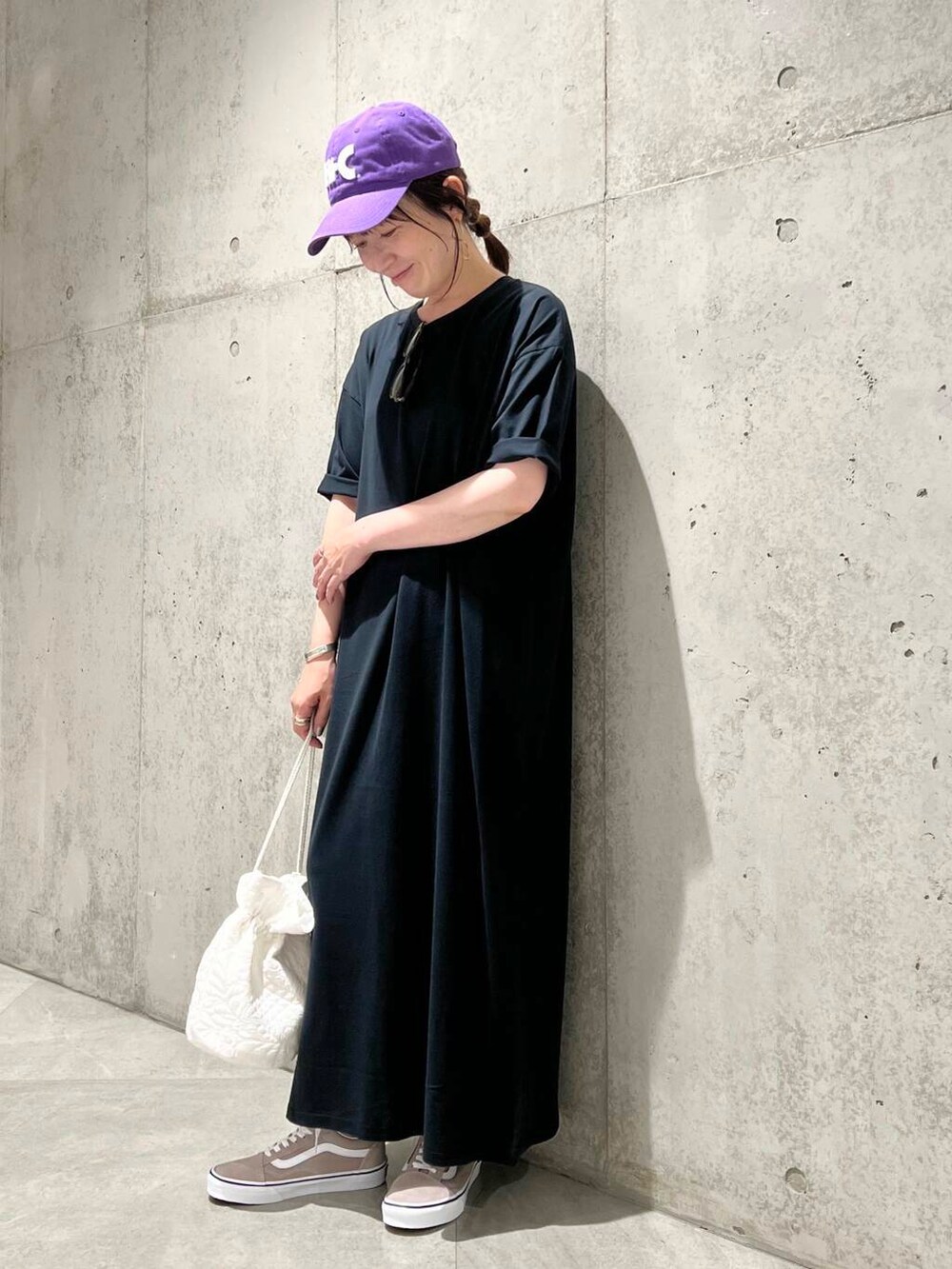 気になる二の腕周りをカバーしてくれる5分袖丈に、身体のラインを拾わないサイズ感が嬉しいポイント。