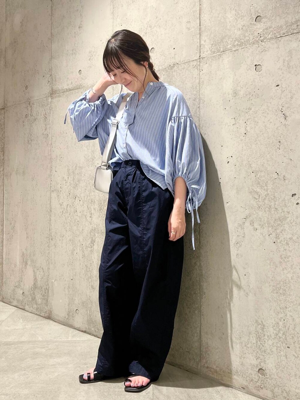 今回は、コクーンシルエットが特徴的なパンツと合わせた、大人カジュアルコーディネートです。