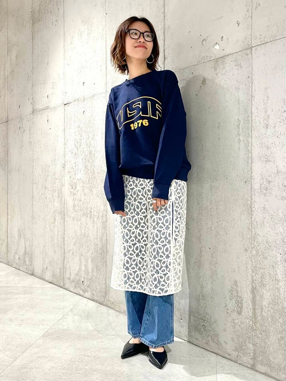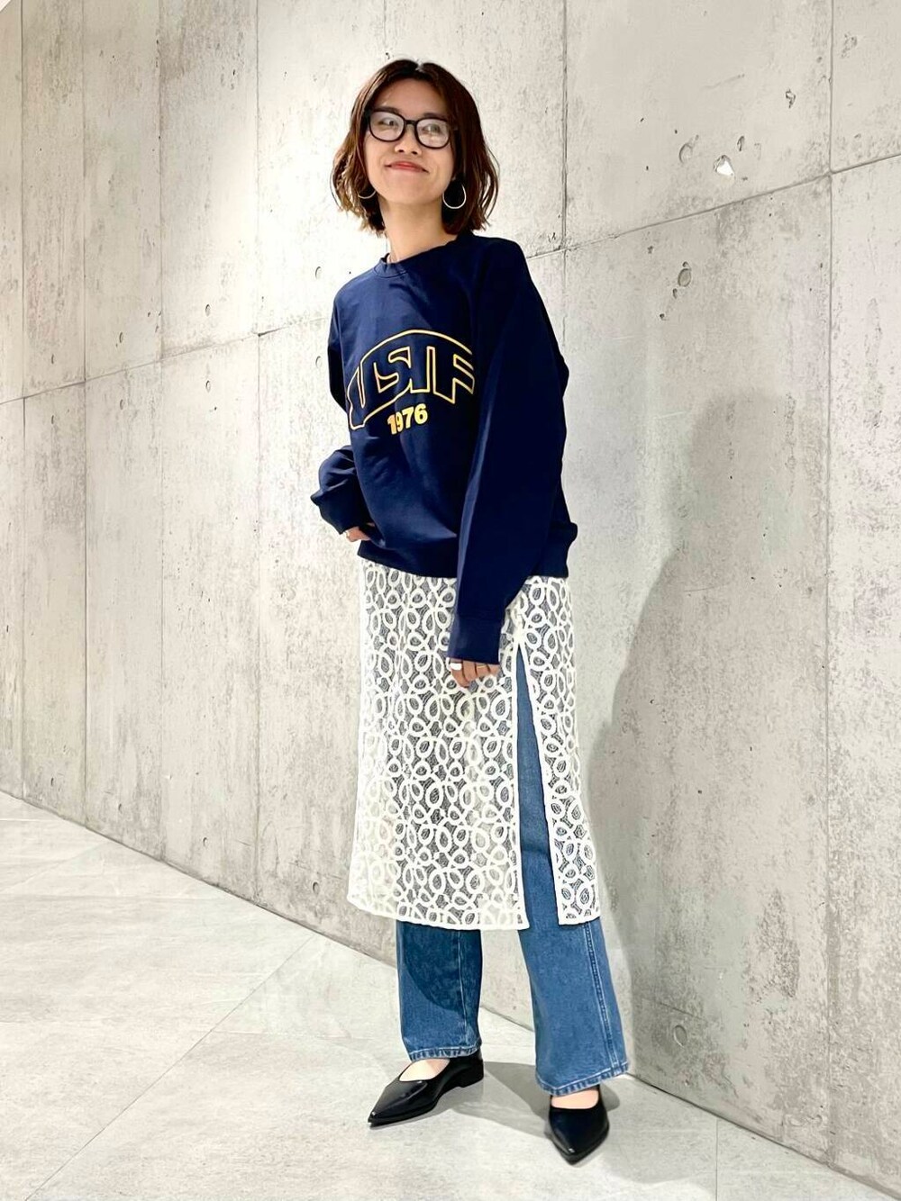 デニムとのワンツーコーデも可愛いですが、今回はURのレーススカートを合わせてレディライクにしてみました。