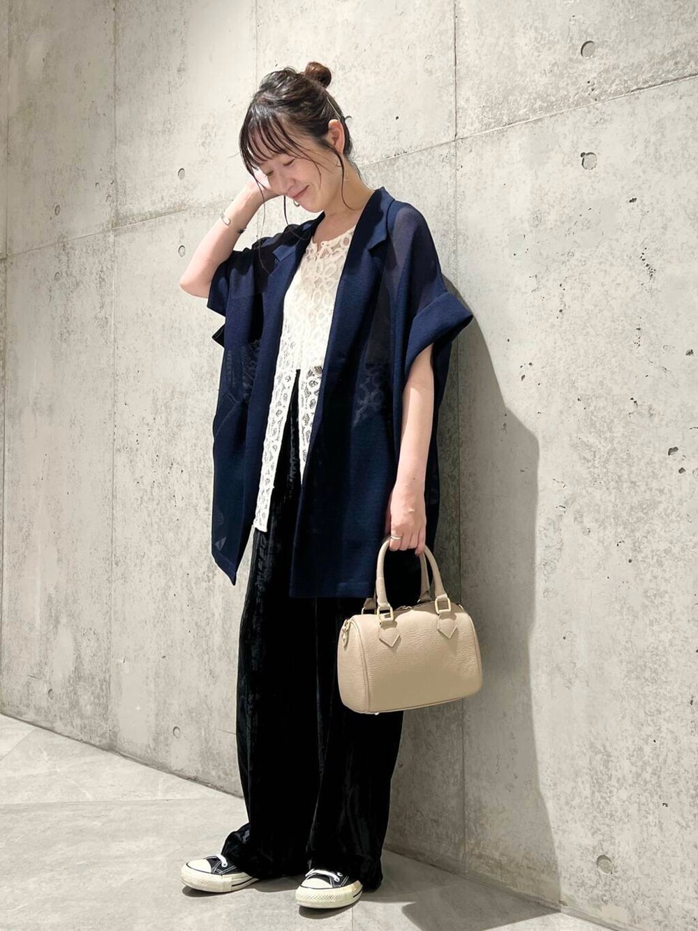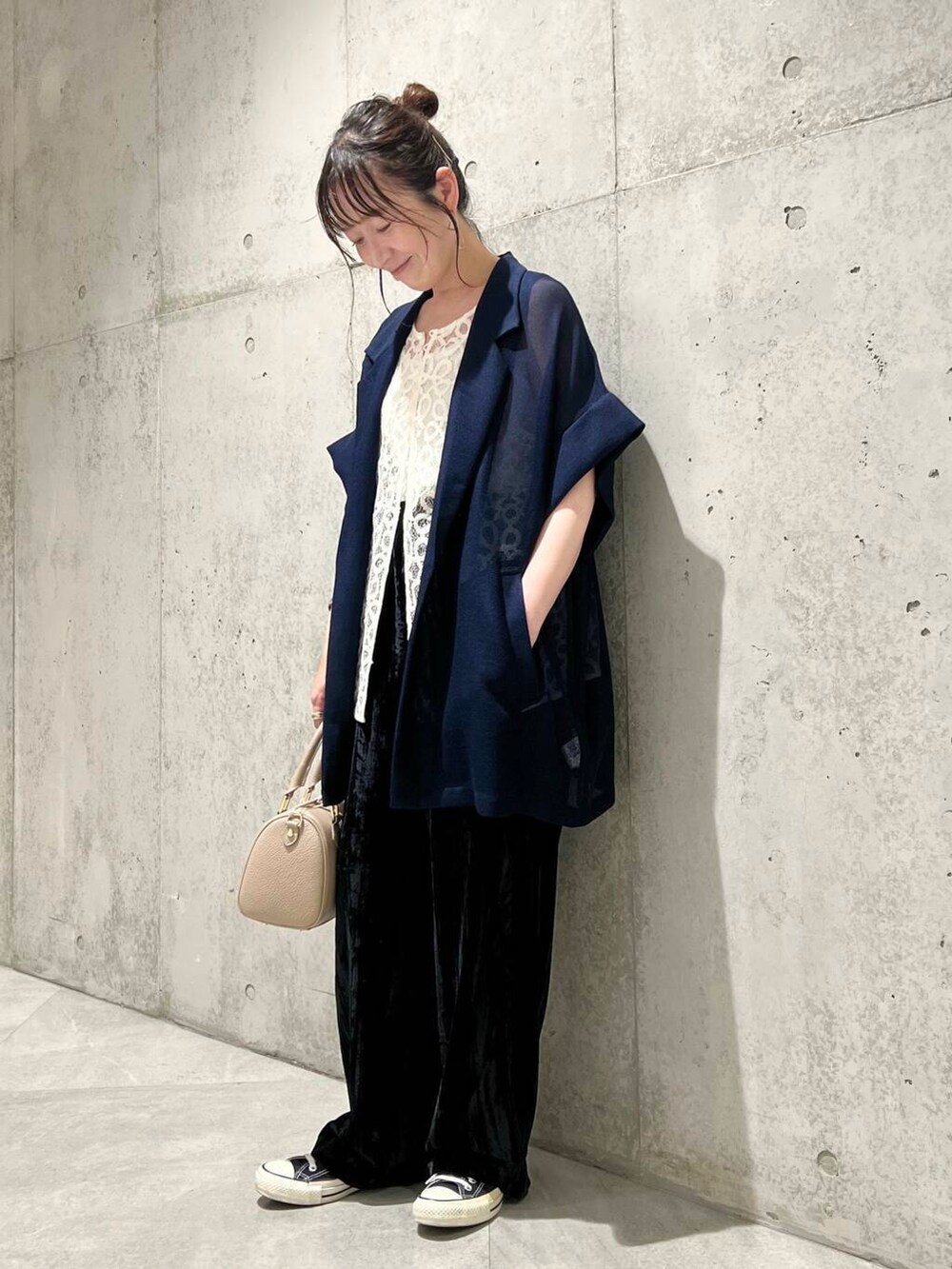 今回は、レースのベストをレイヤードして、トレンド感をプラスしてみました。
