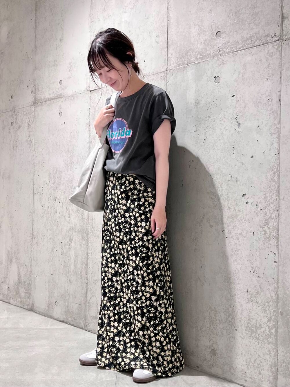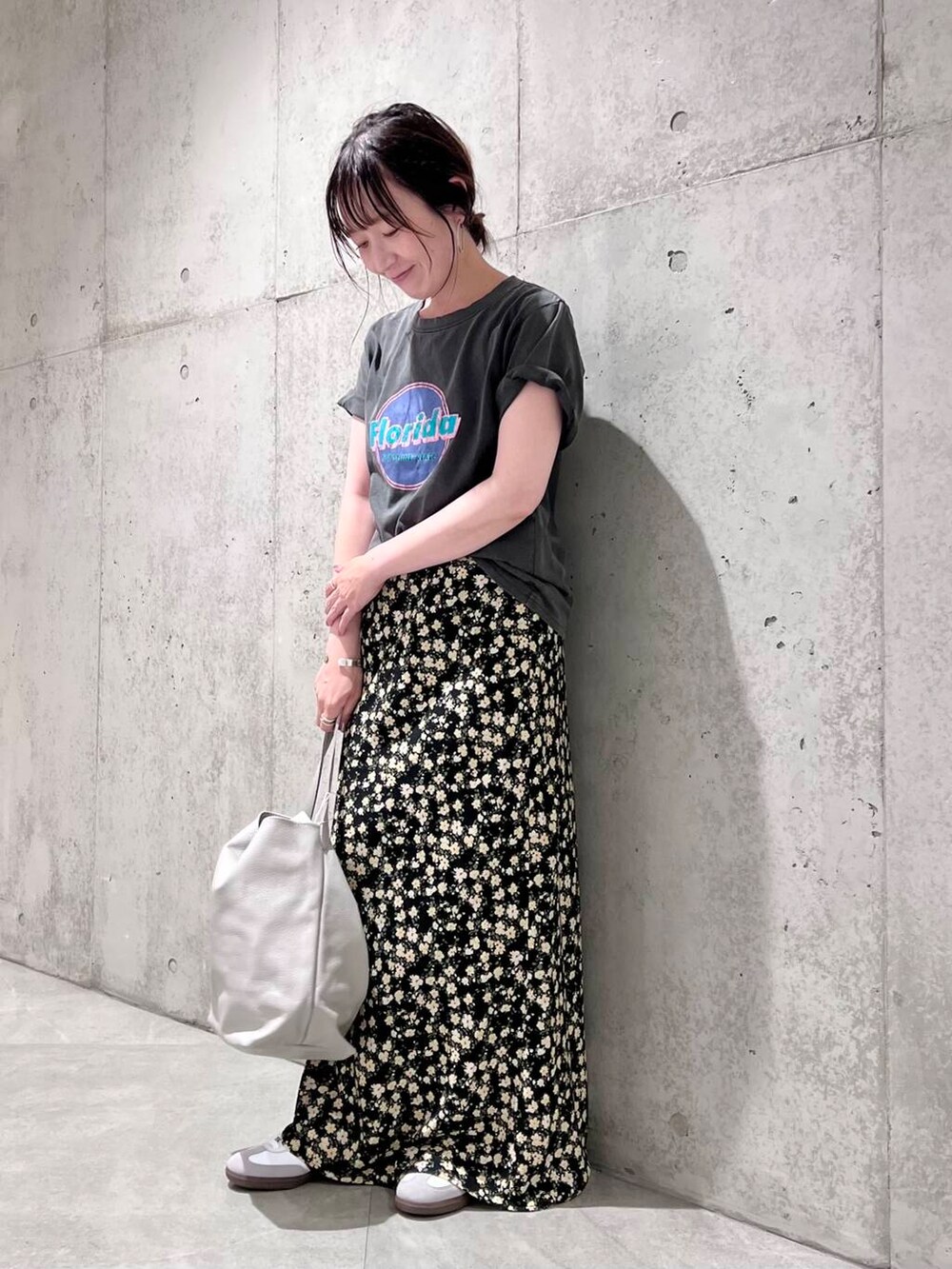 スカートは、花柄にスッキリとしたシルエットが特徴的で、これからの季節、スウェット合わせもおすすめです。