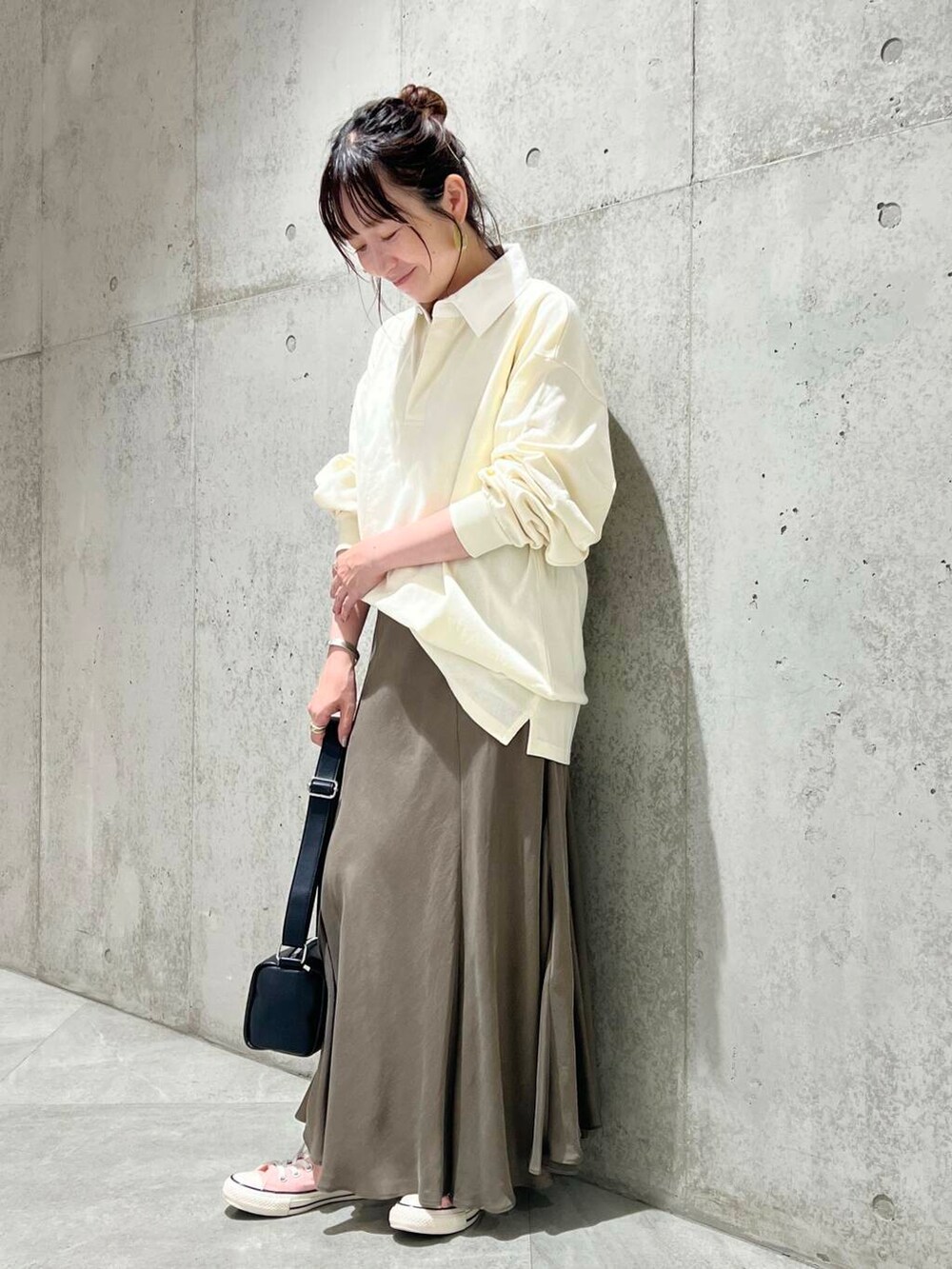 今回は、女性らしいフレアスカートを合わせて、甘さをプラスしてみました。