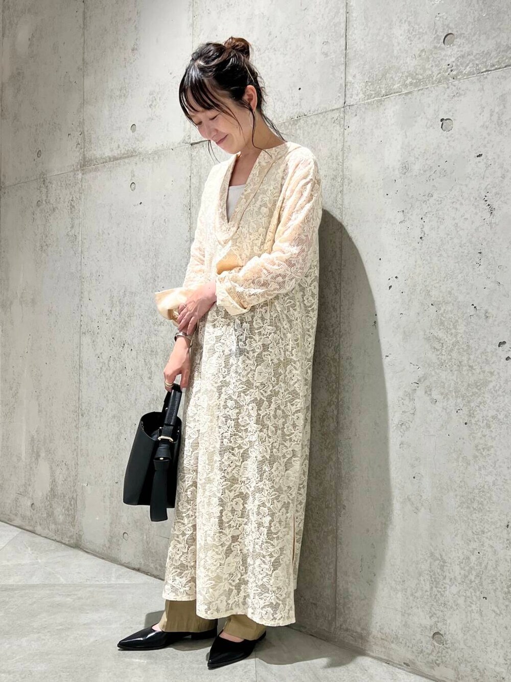 今回は、ベージュのストレートパンツとレイヤードスタイル。