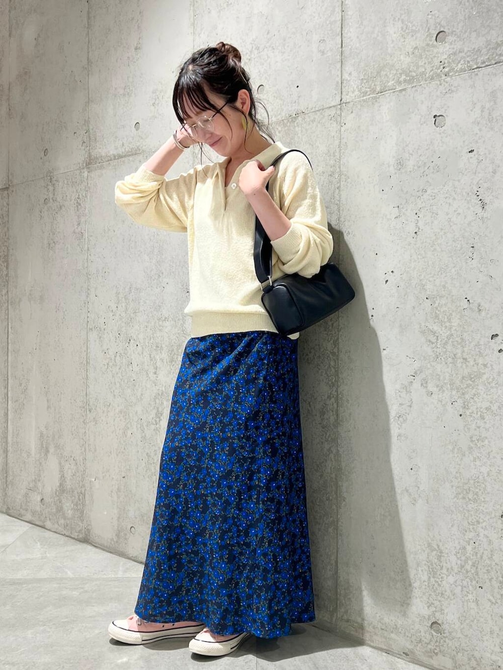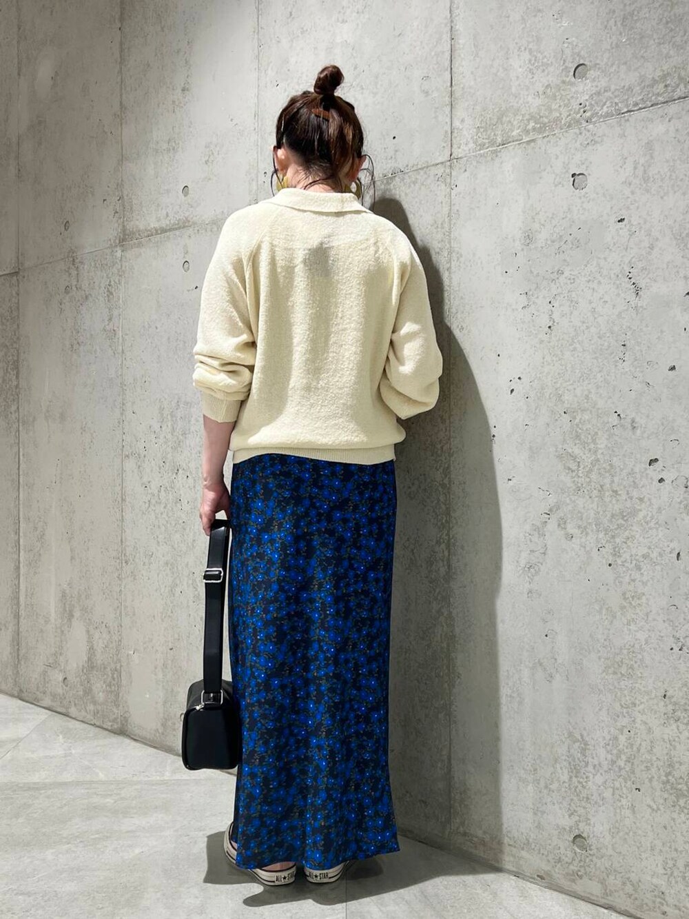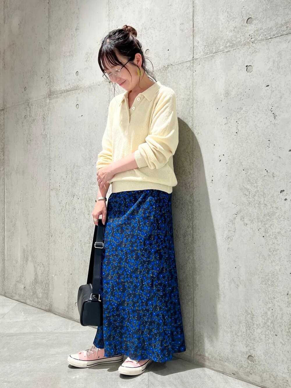 スカートは、花柄にスッキリとしたシルエットが特徴的で、これからの季節、スウェット合わせもおすすめ。