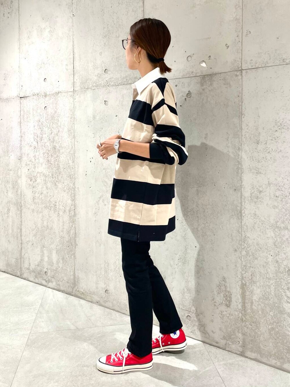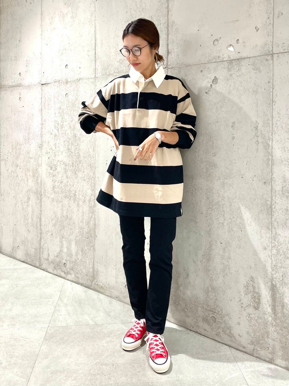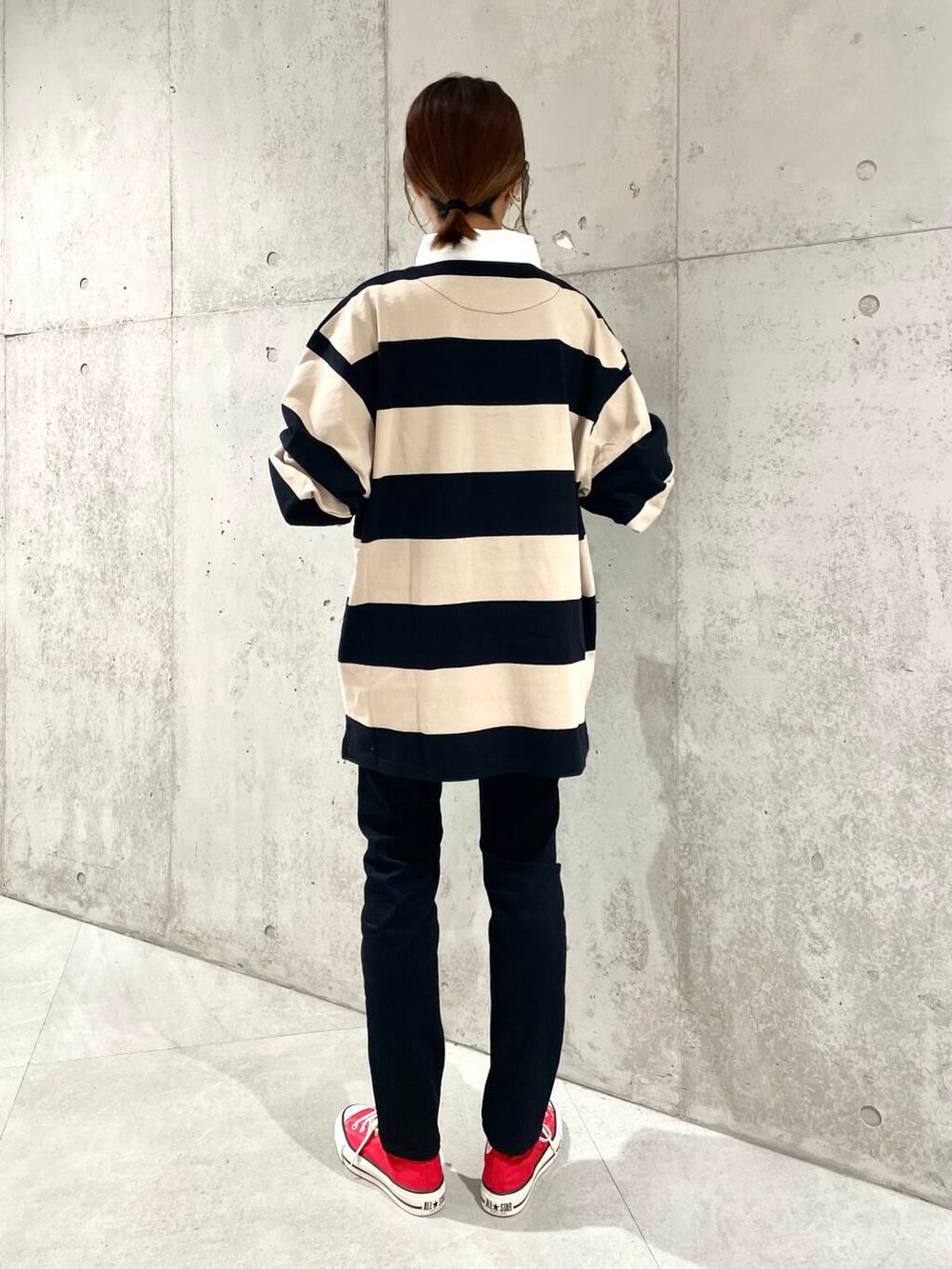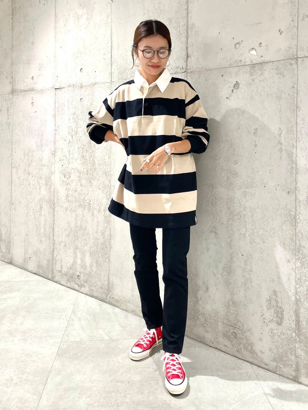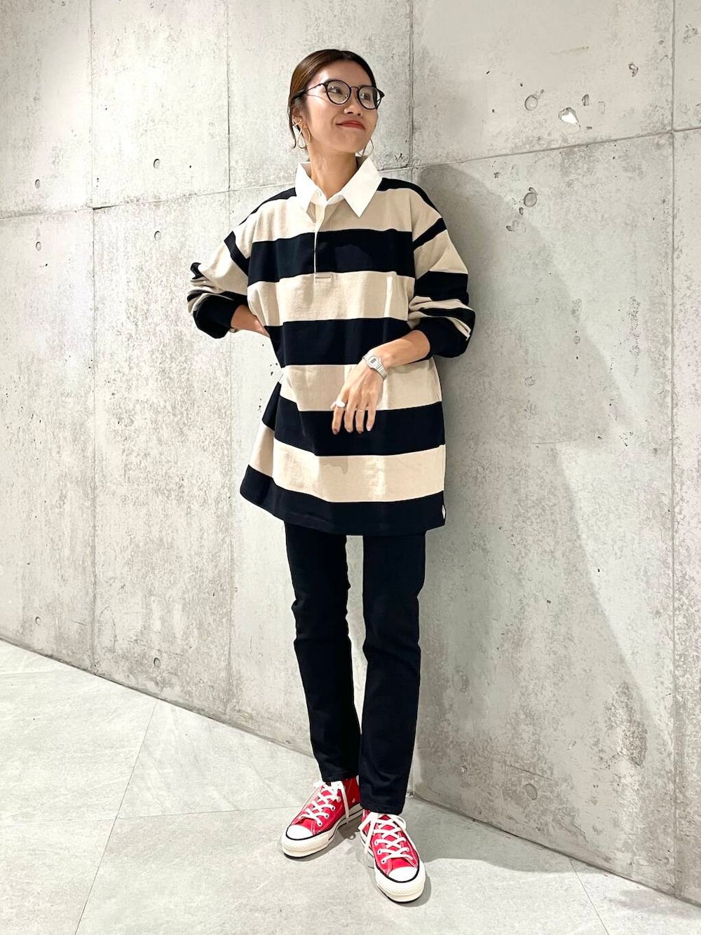大きめサイズのものを着るときは、髪をアップにしたりコンパクトにまとめると垢抜けます!