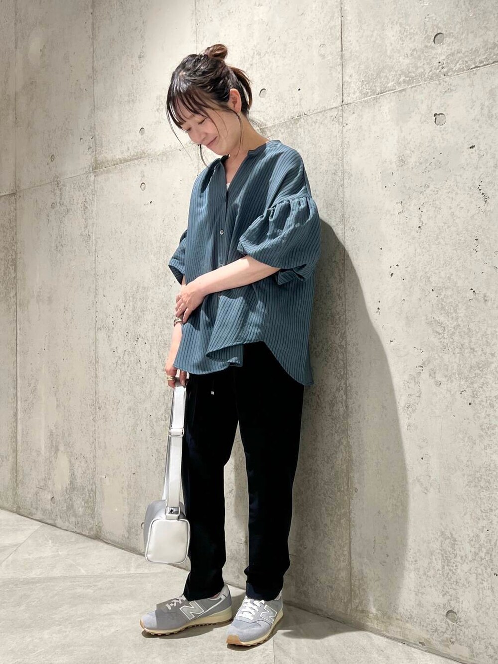今回は、スッキリとしたシルエットのテーパードパンツと合わせてみました。