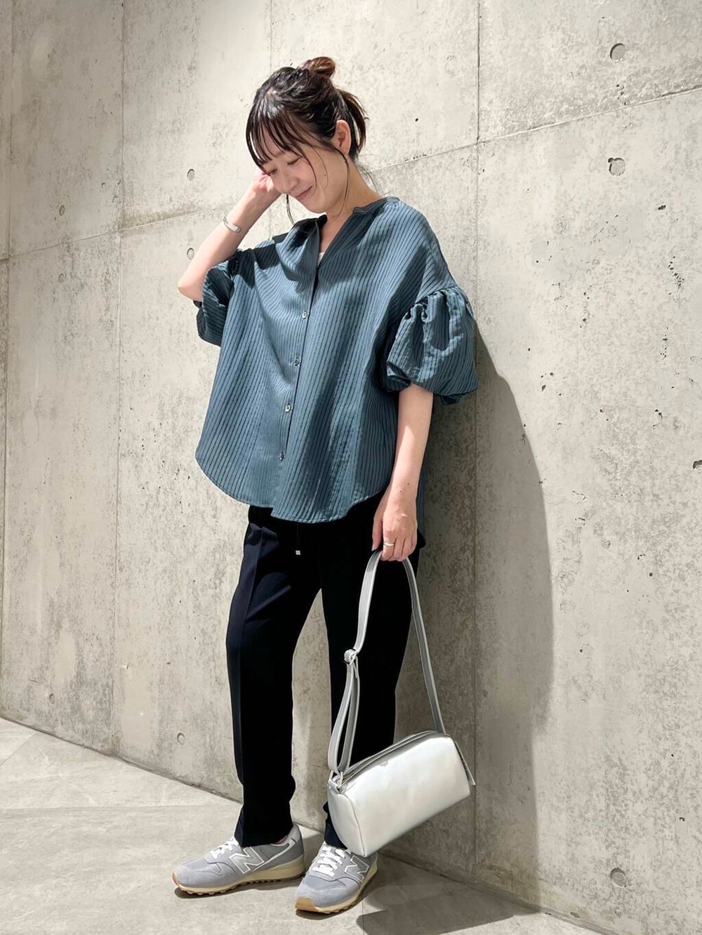 さりげないストライプ柄と、立体的なバルーンスリーブがスタイリングに華やかさをプラスしてくれます。