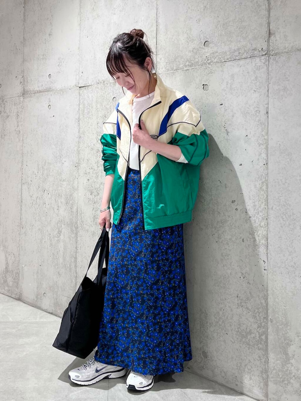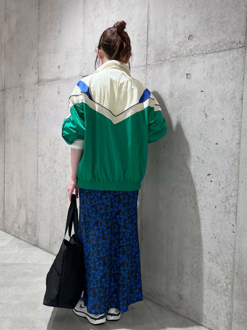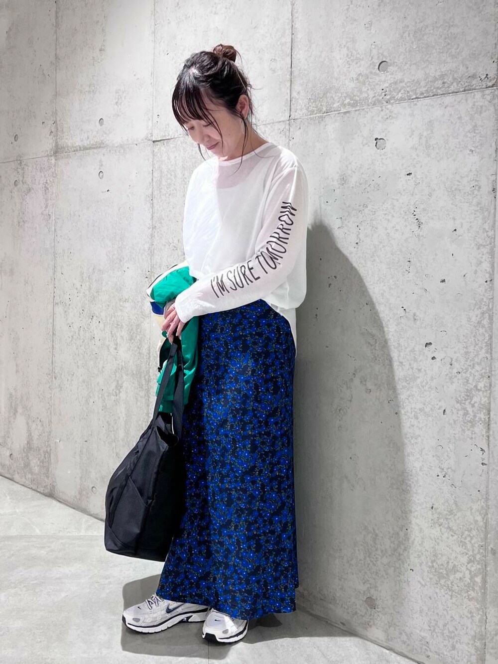 スカートは、花柄にスッキリとしたシルエットが特徴的で、これからの季節、スウェット合わせもおすすめ。