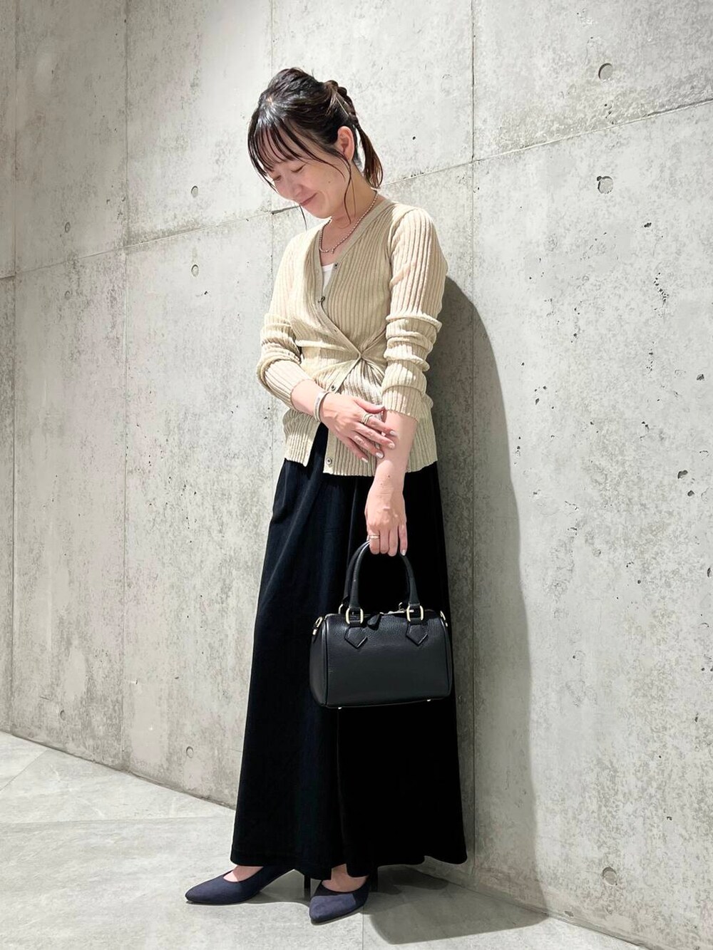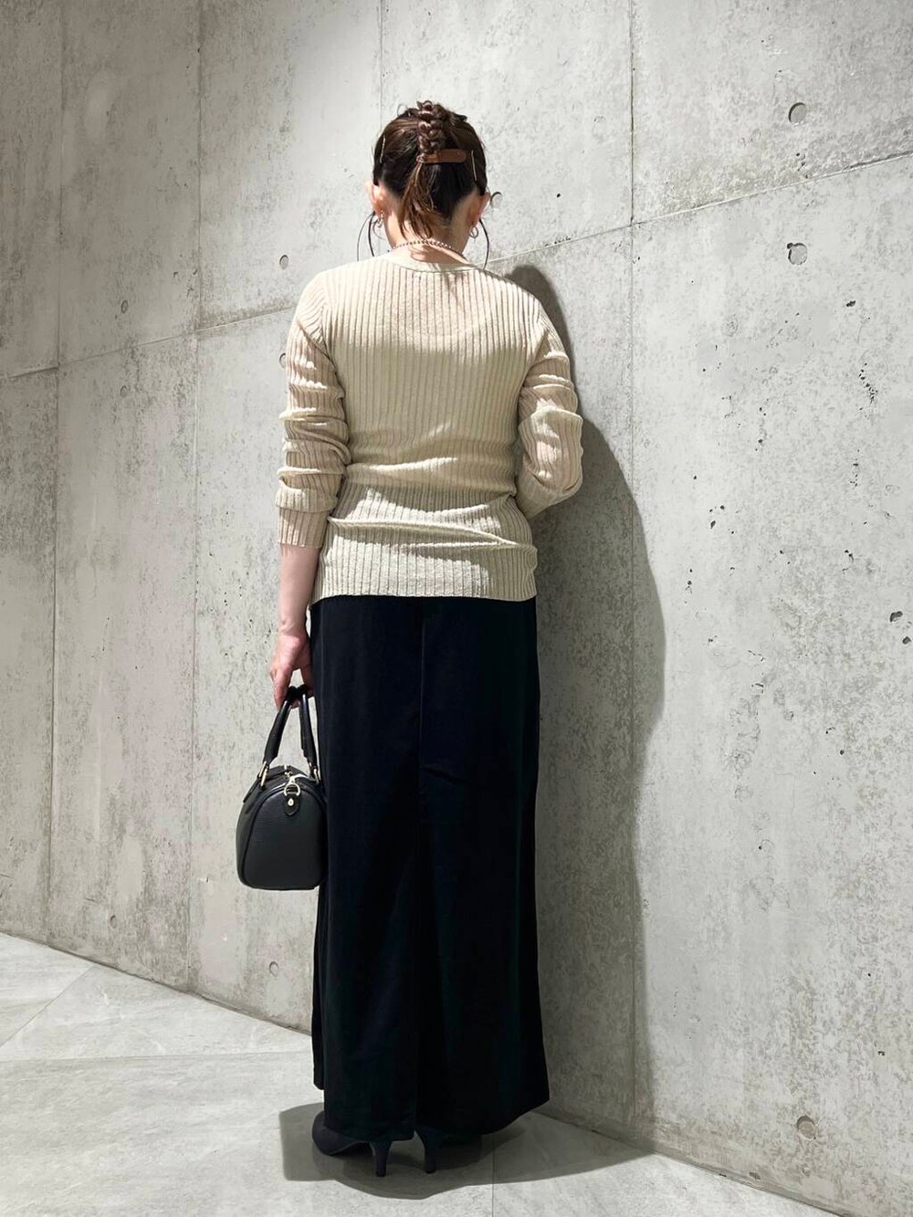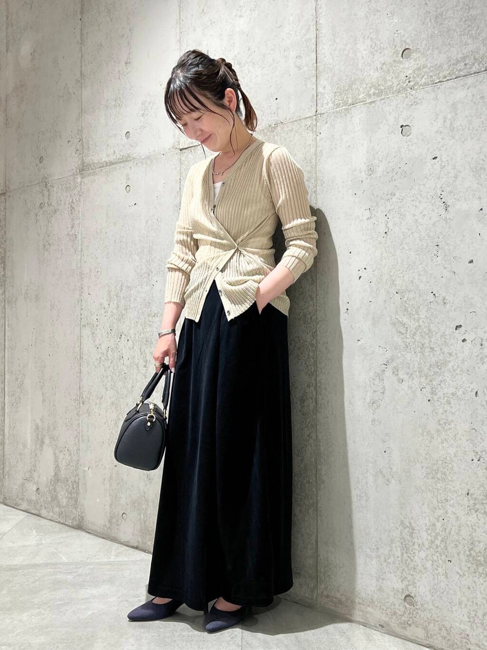 今回は、ベロアのスカートと合わせた、キレイめコーディネートです。