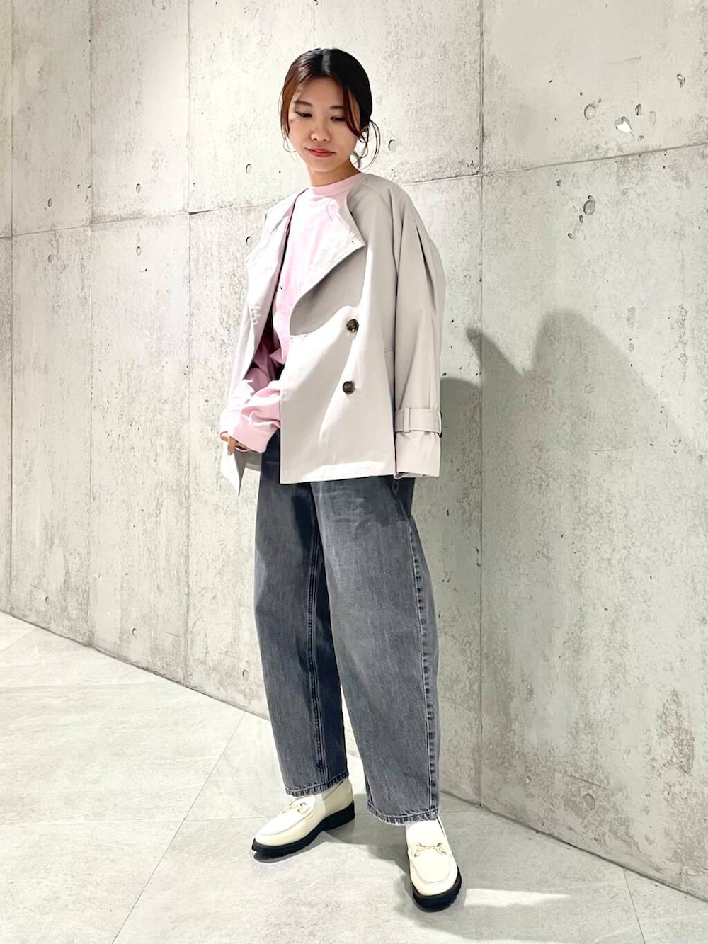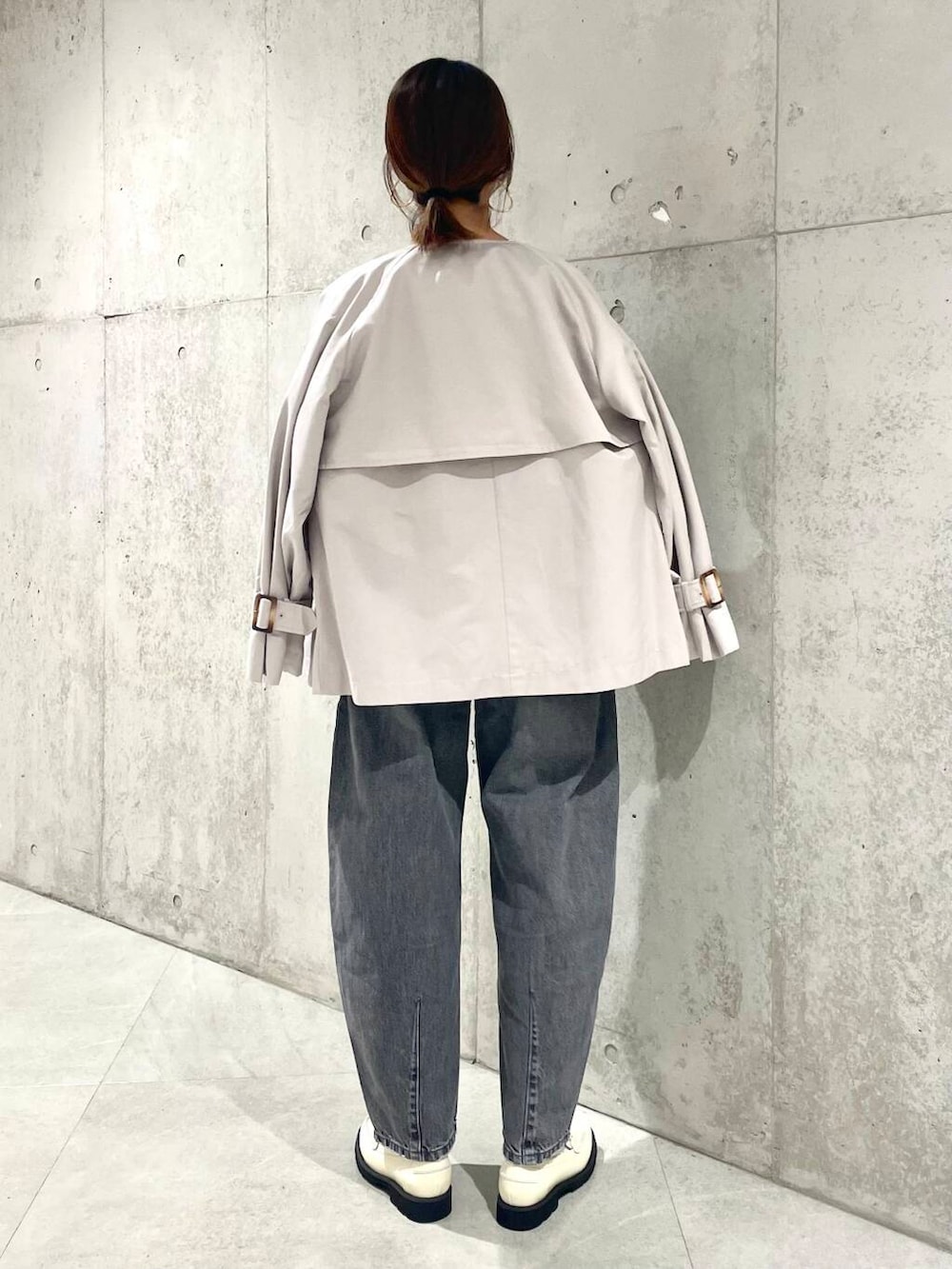 外側に膨れたカジュアルなシルエットなので、靴にかからない36サイズをチョイス。