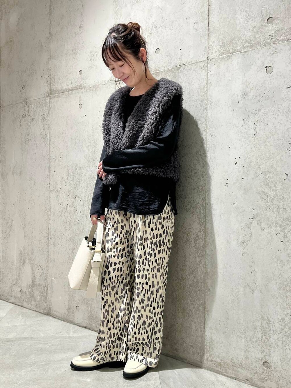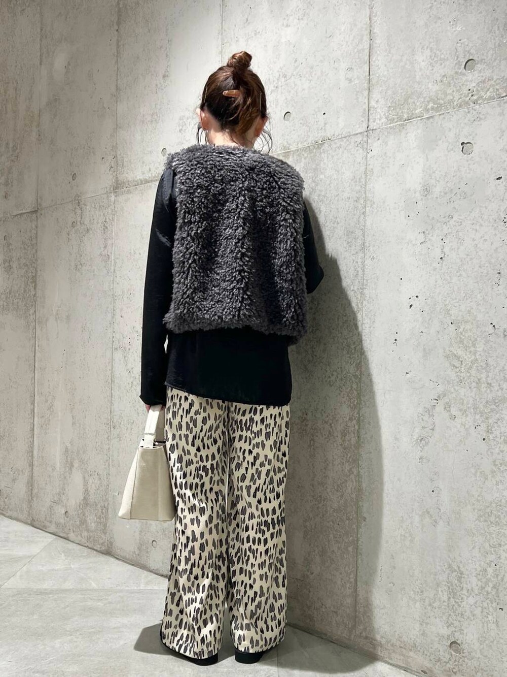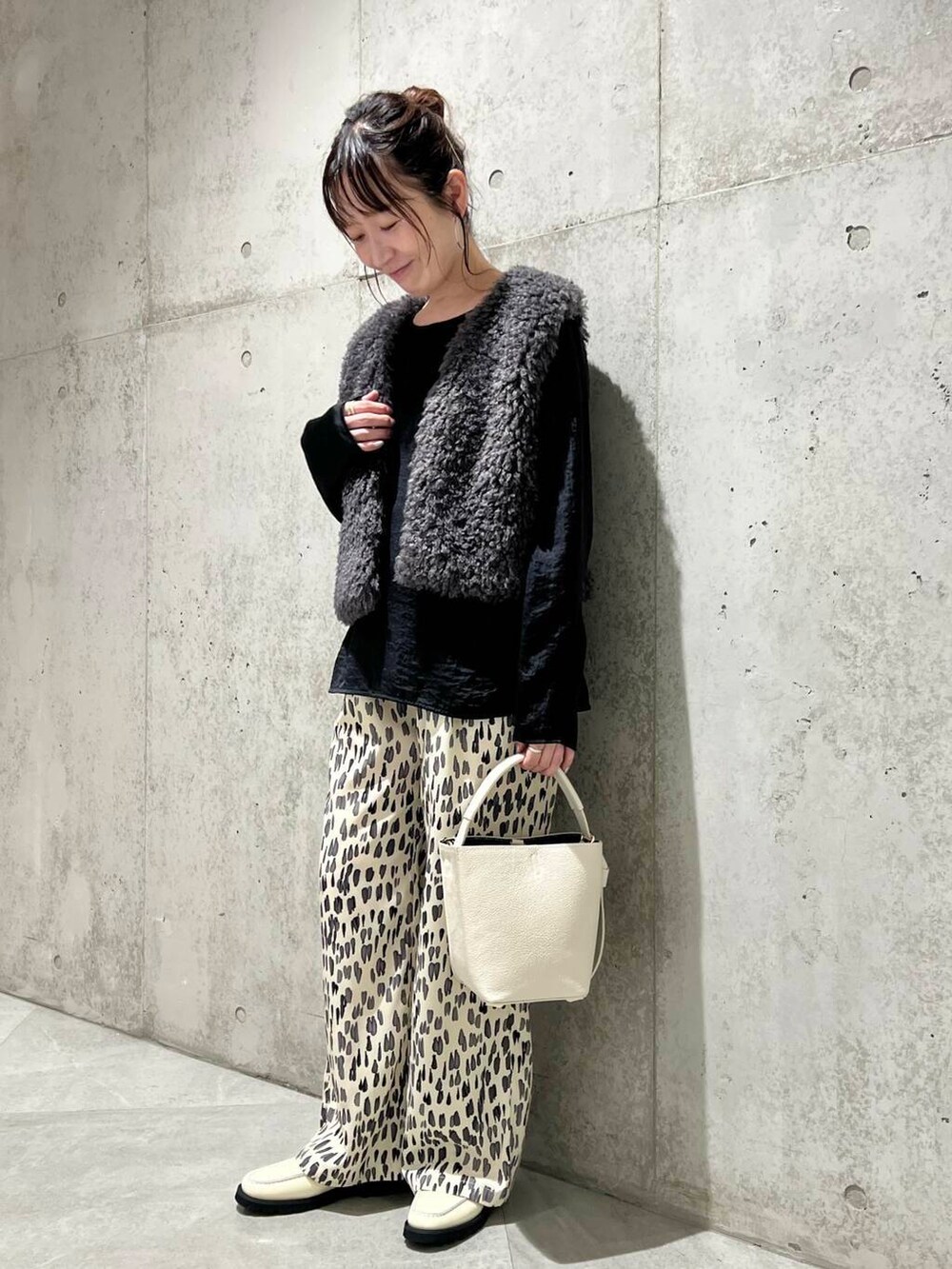 今回は、ファーベストをレイヤードして、季節感を出したコーディネート。