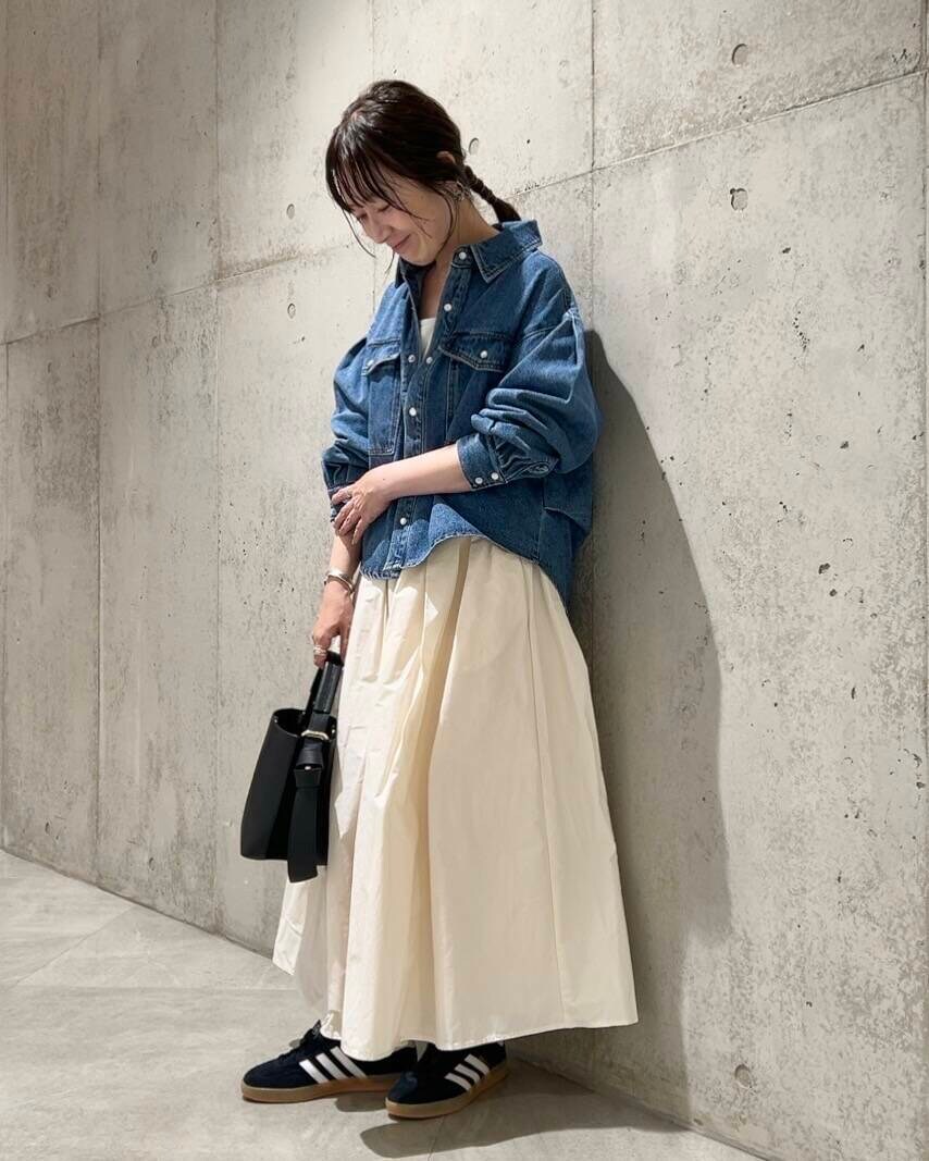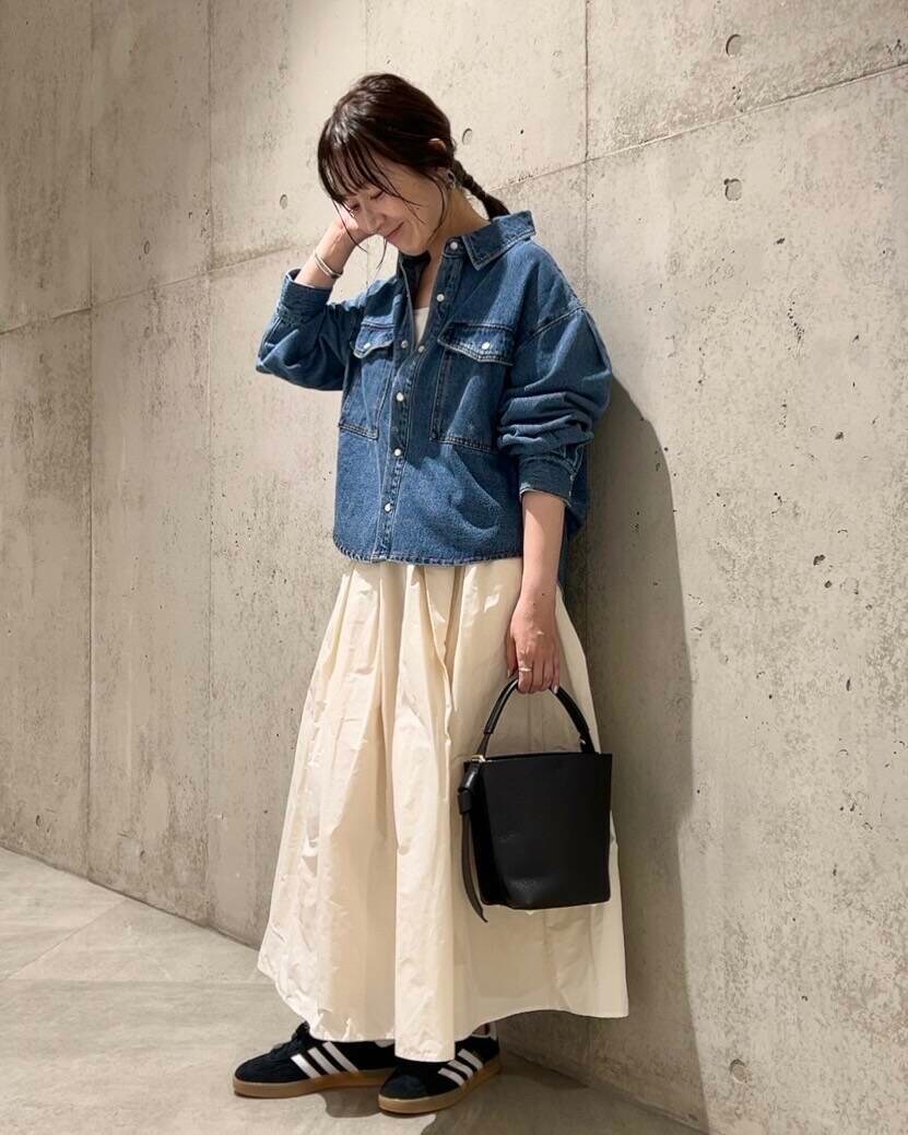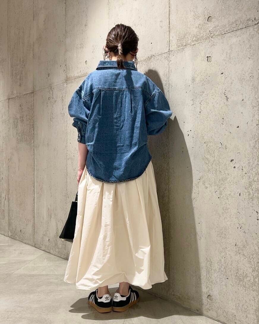 今回は、ハリのあるナイロン素材が使われた、ボリュームスカートを合わせました。