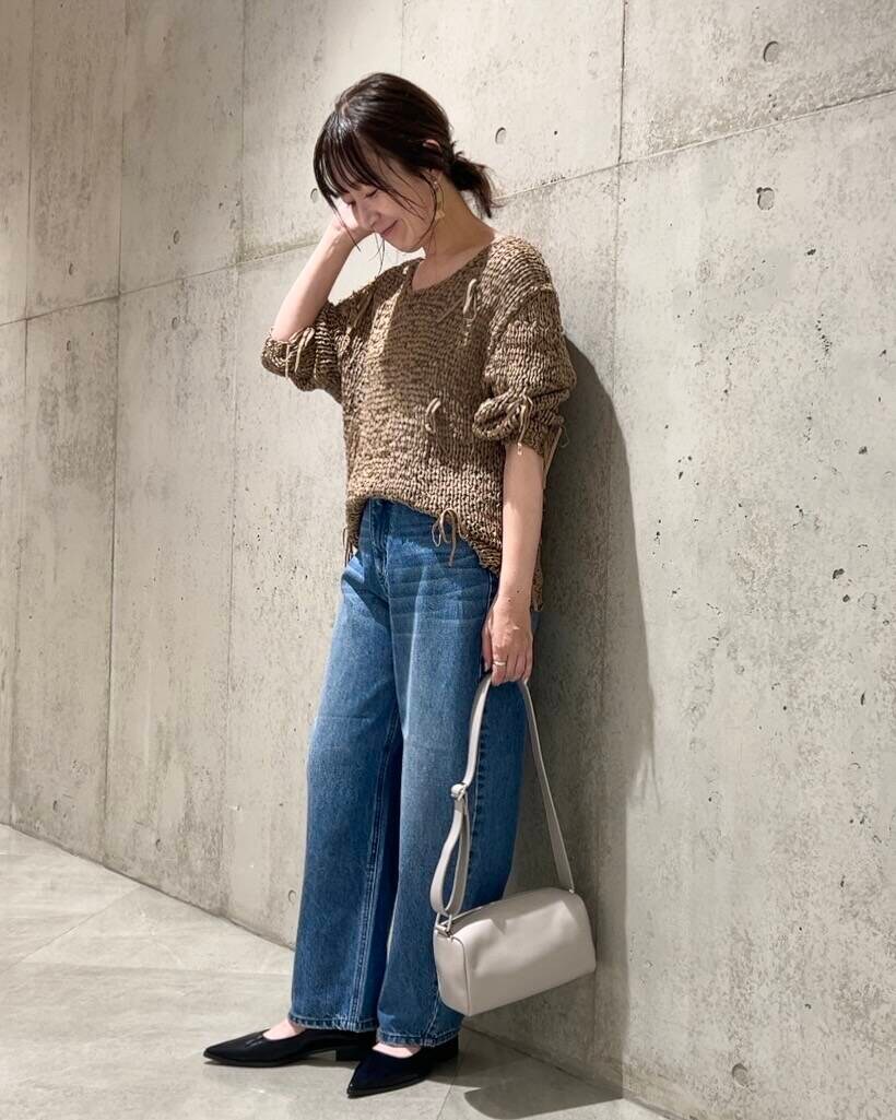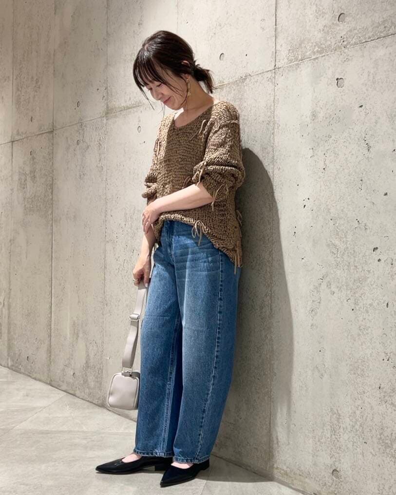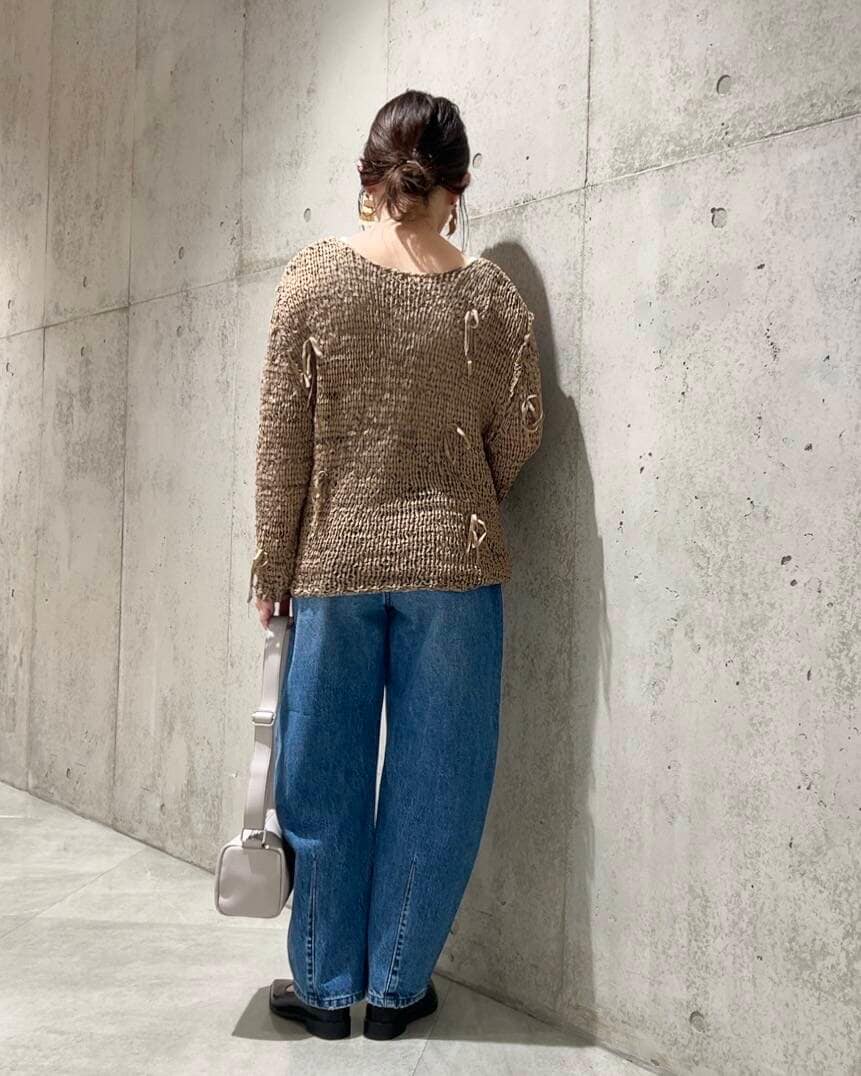 今回は、カーブシルエットが特徴的なデニムと合わせました。