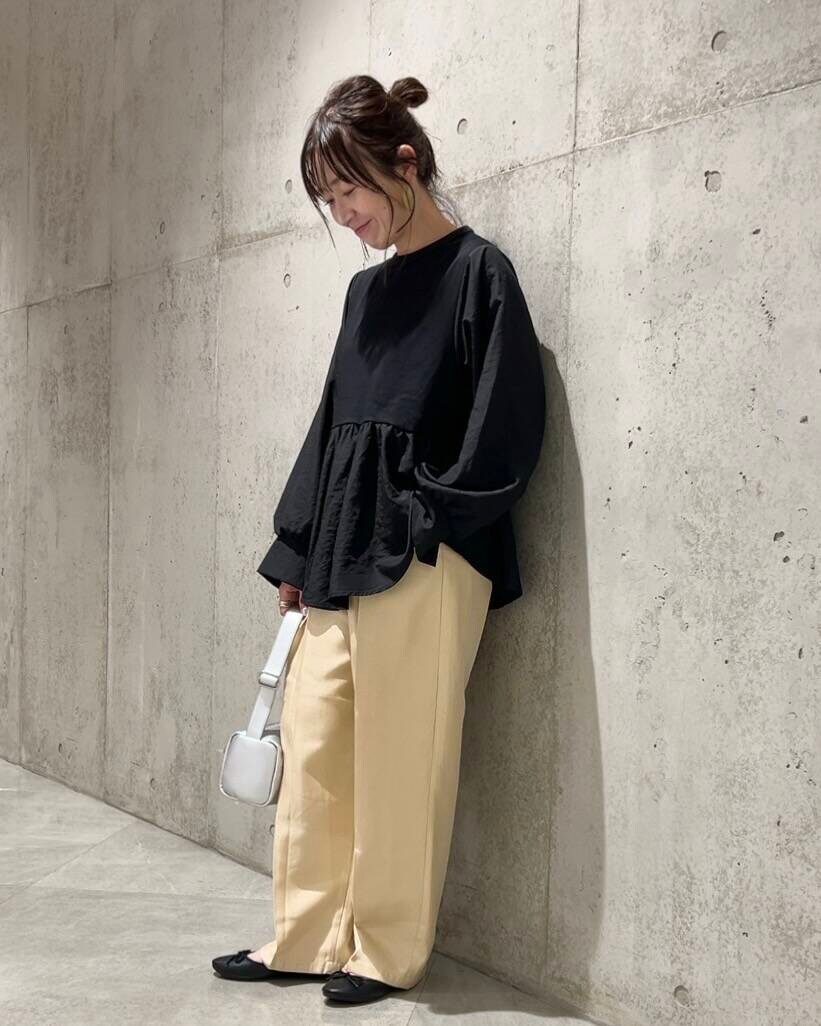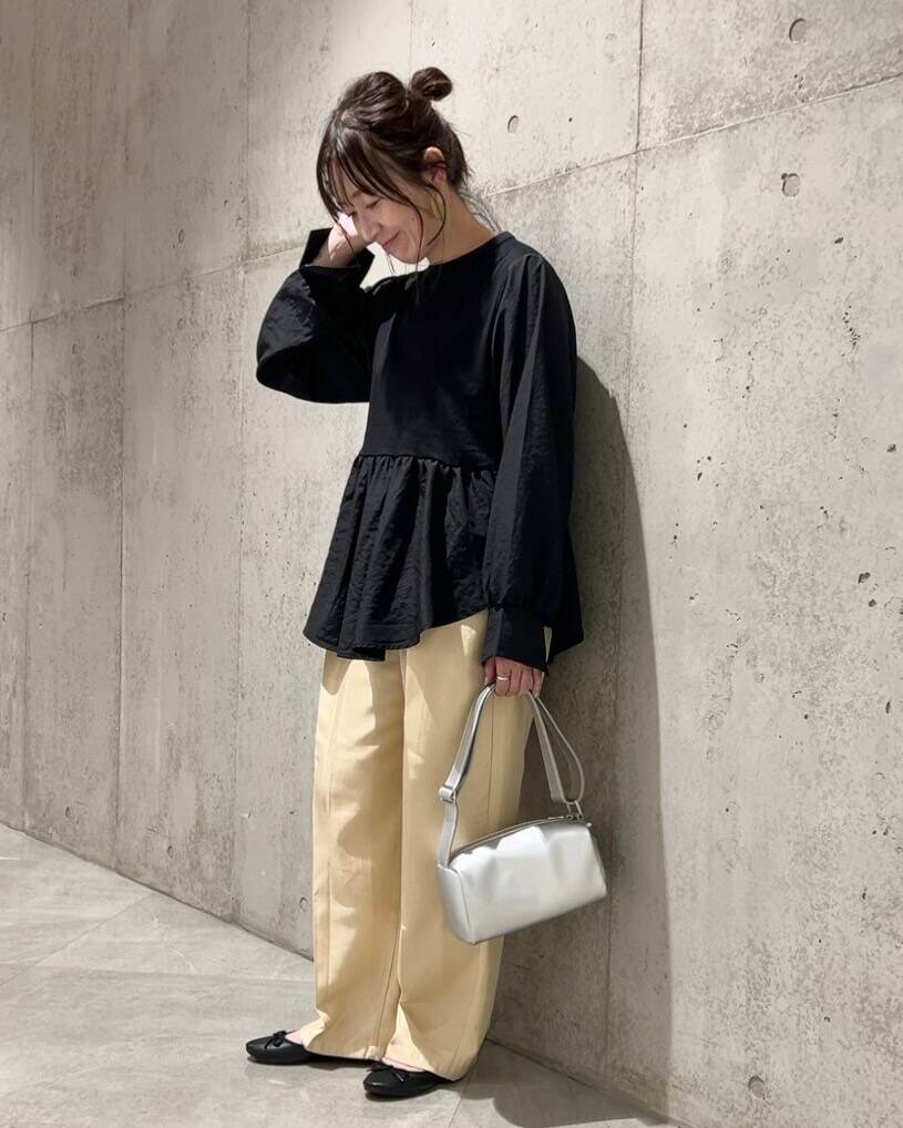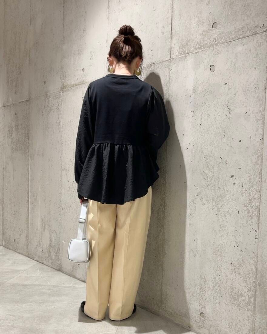 今回は、サテンパンツと合わせた、キレイめコーディネートです。