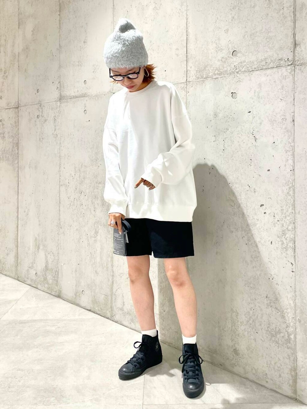 ボトムの裾が開始0秒でビショビショになる心配とはおさらば!のショートパンツと、オールブラックが気分な、こう見えて撥水!のGORE-TEXコンバース。