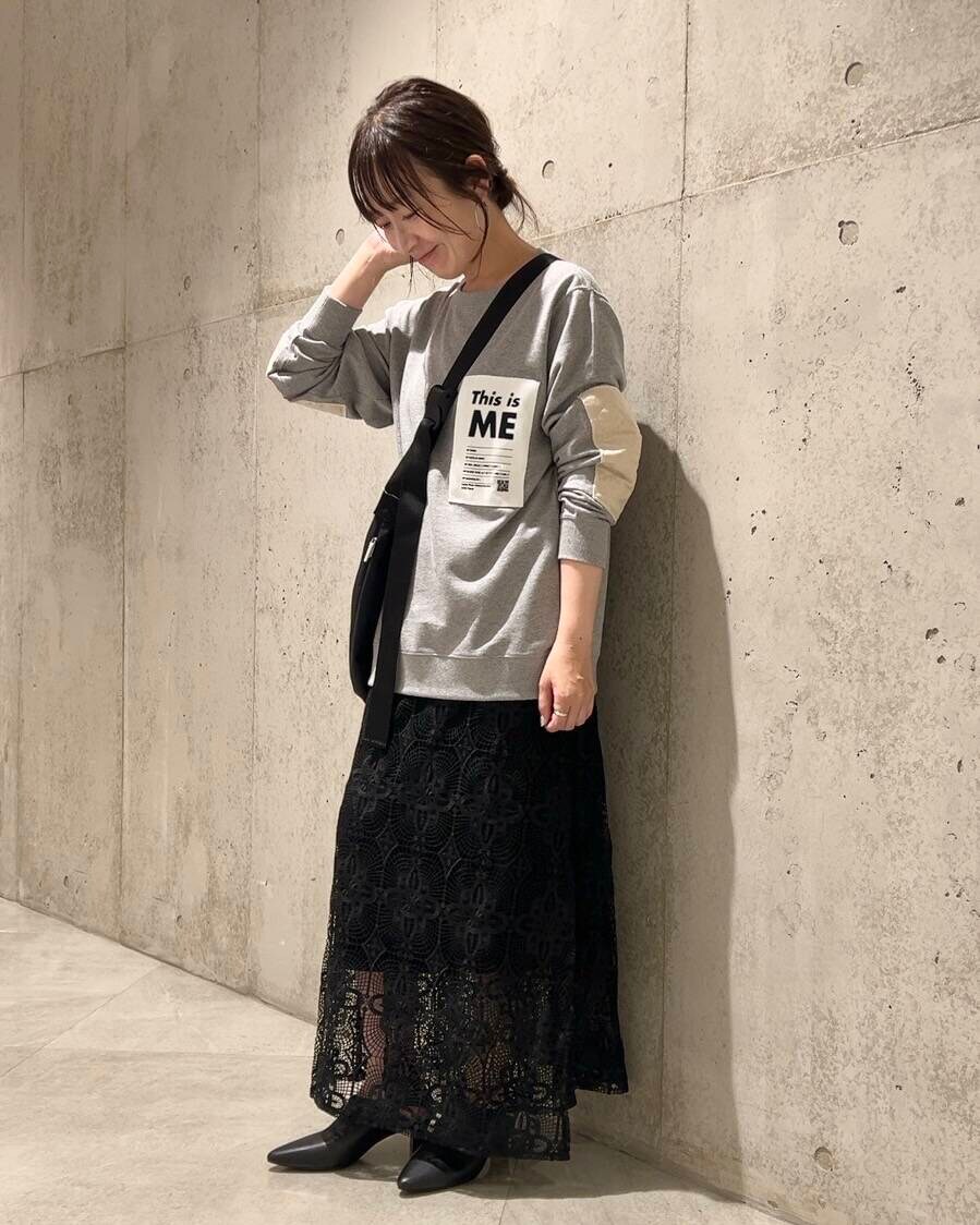 今回は、トレンドのレーススカートと合わせた、大人カジュアルコーディネートです。