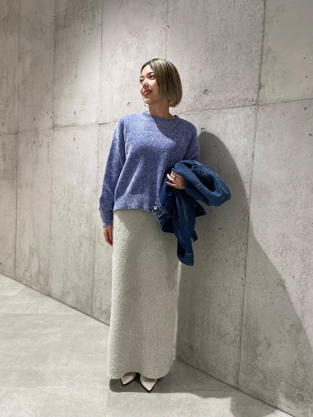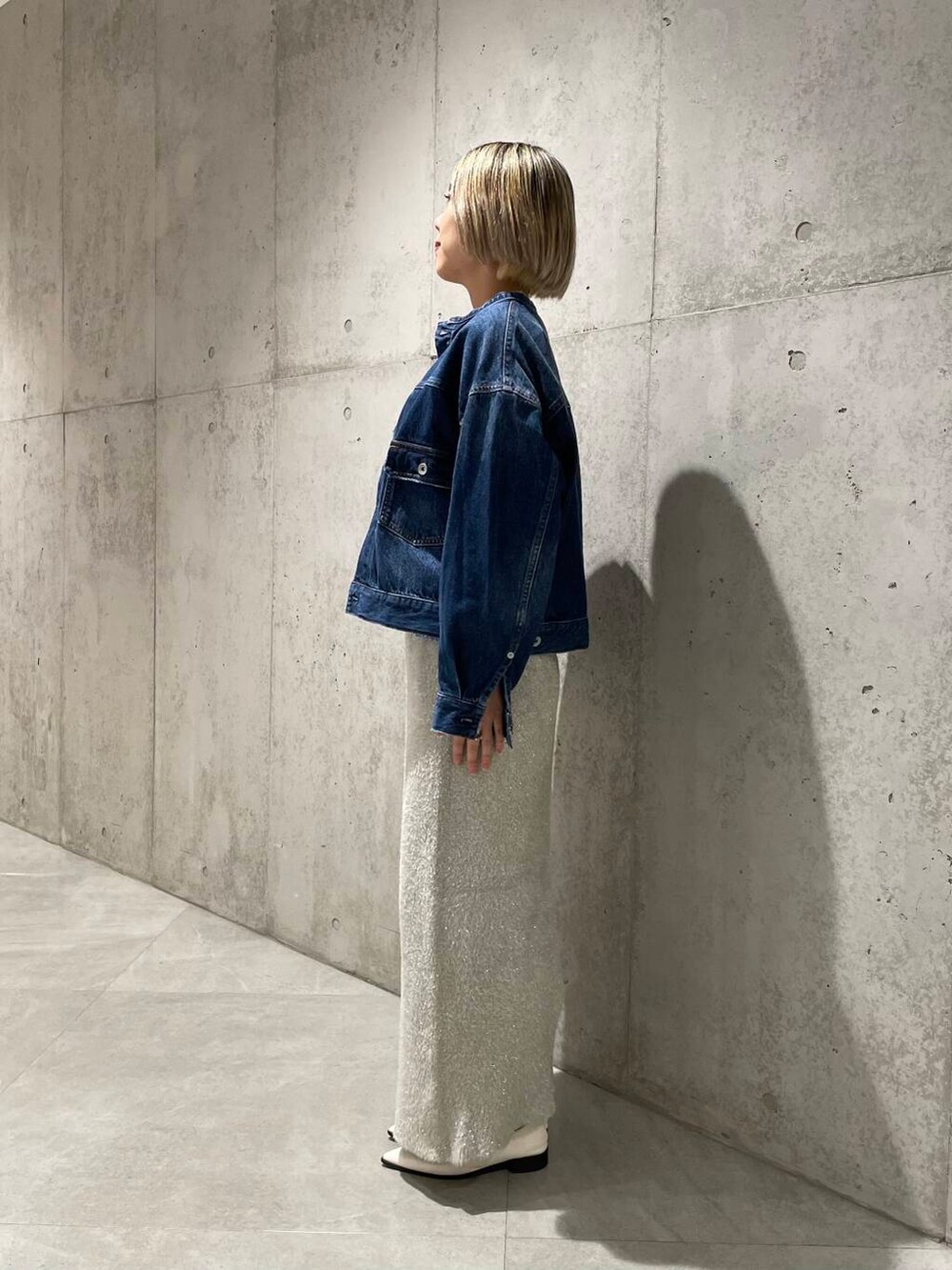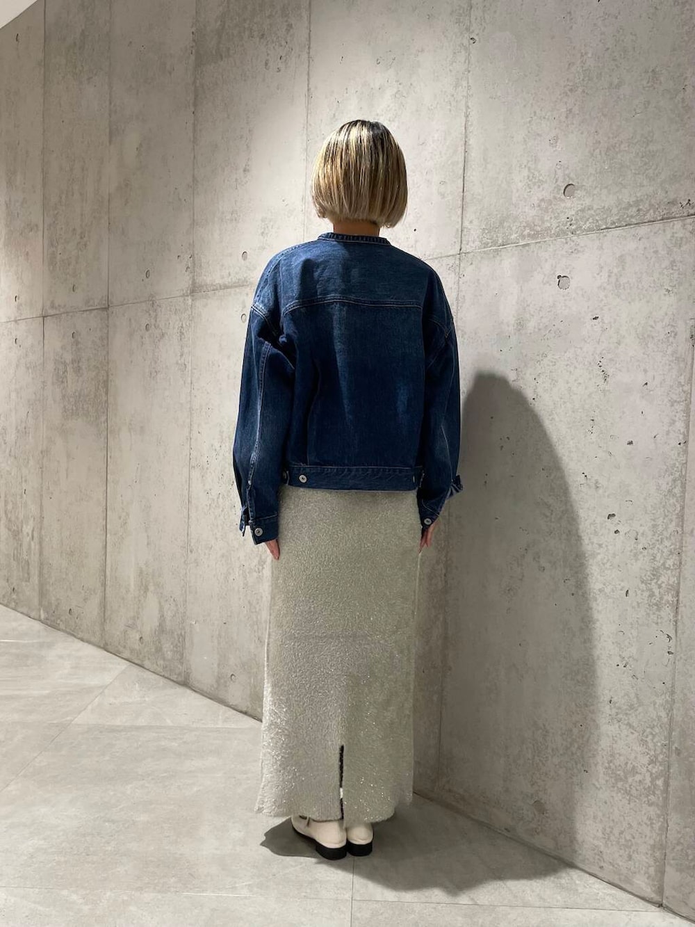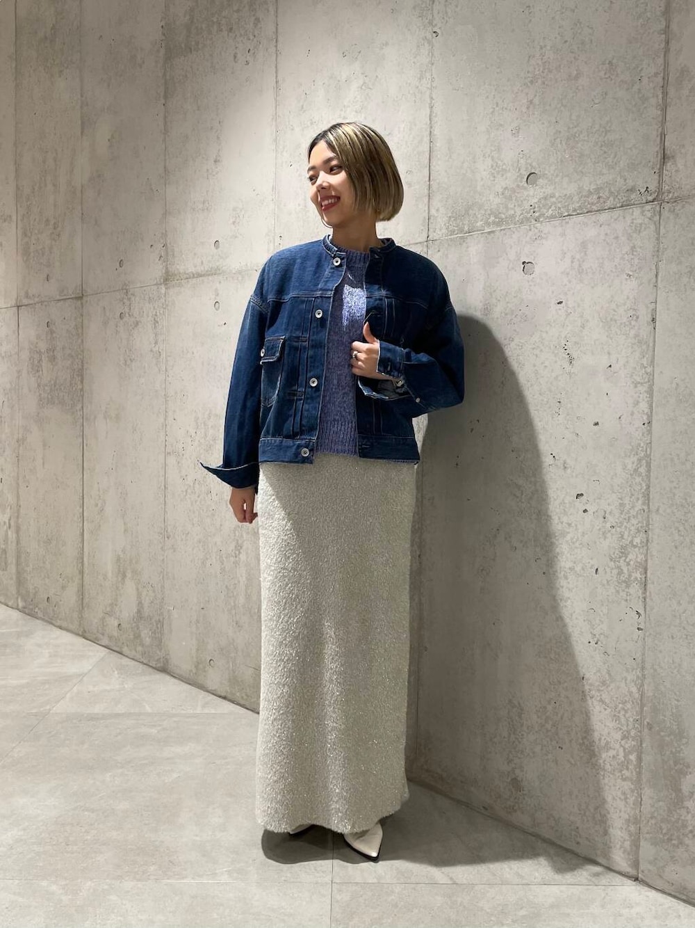 ノーカラーが珍しい!ニットも楽々袖が通るジャケットです。丈はコンパクトなのでスカートやハイウエストのボトムスが相性良さそうです!