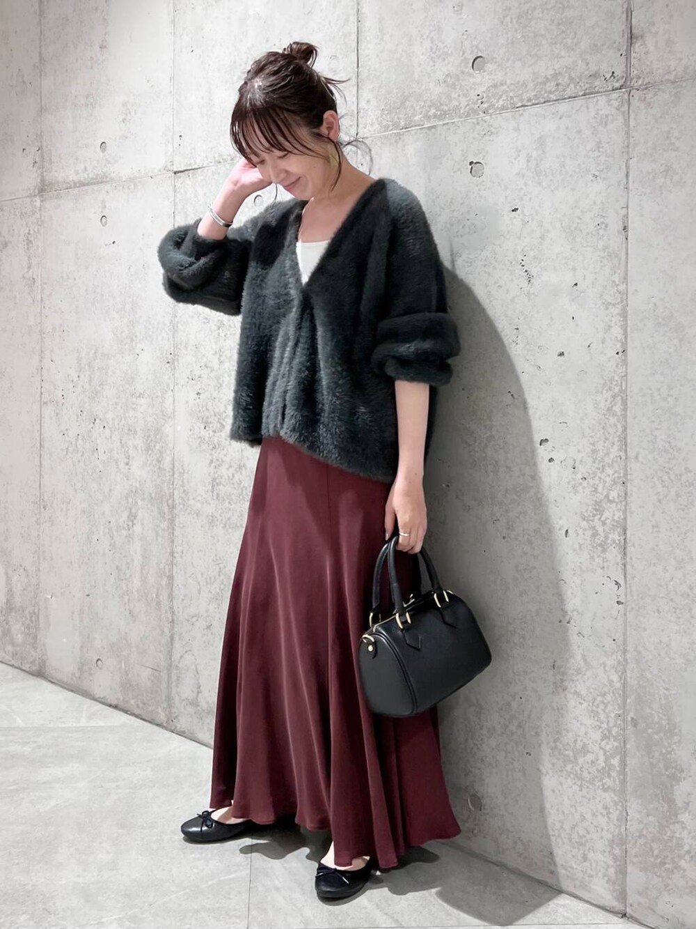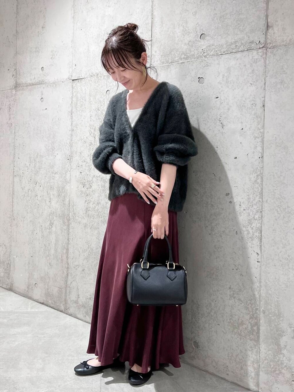 今回は、シルエットのキレイなフレアスカートと合わせた、フェミニンコーディネートです。