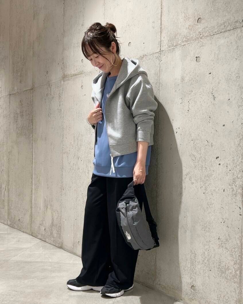 今回は、ROXYのスウェットに、イージーパンツを合わせたアクティブスタイル。