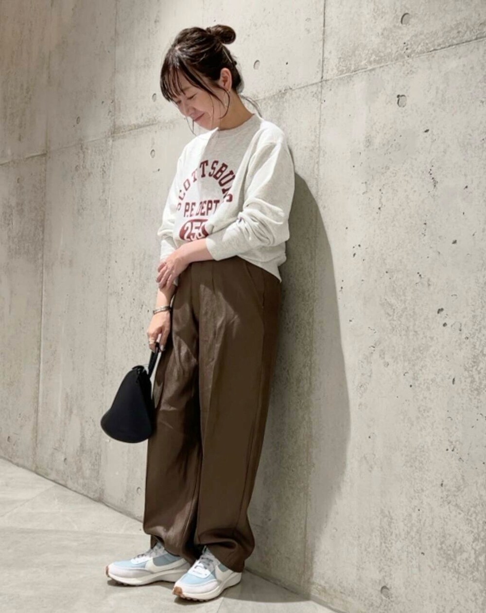 今回は、サテンのパンツと合わせて、大人カジュアルコーディネート。