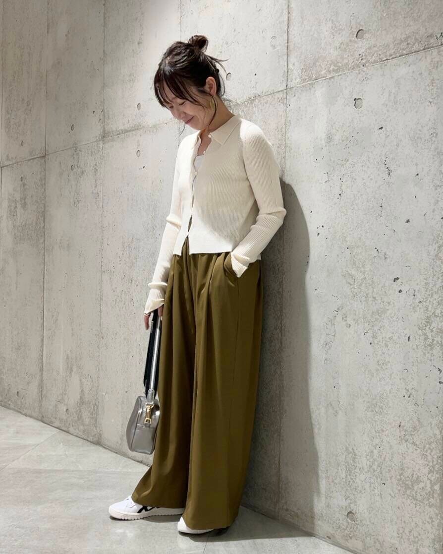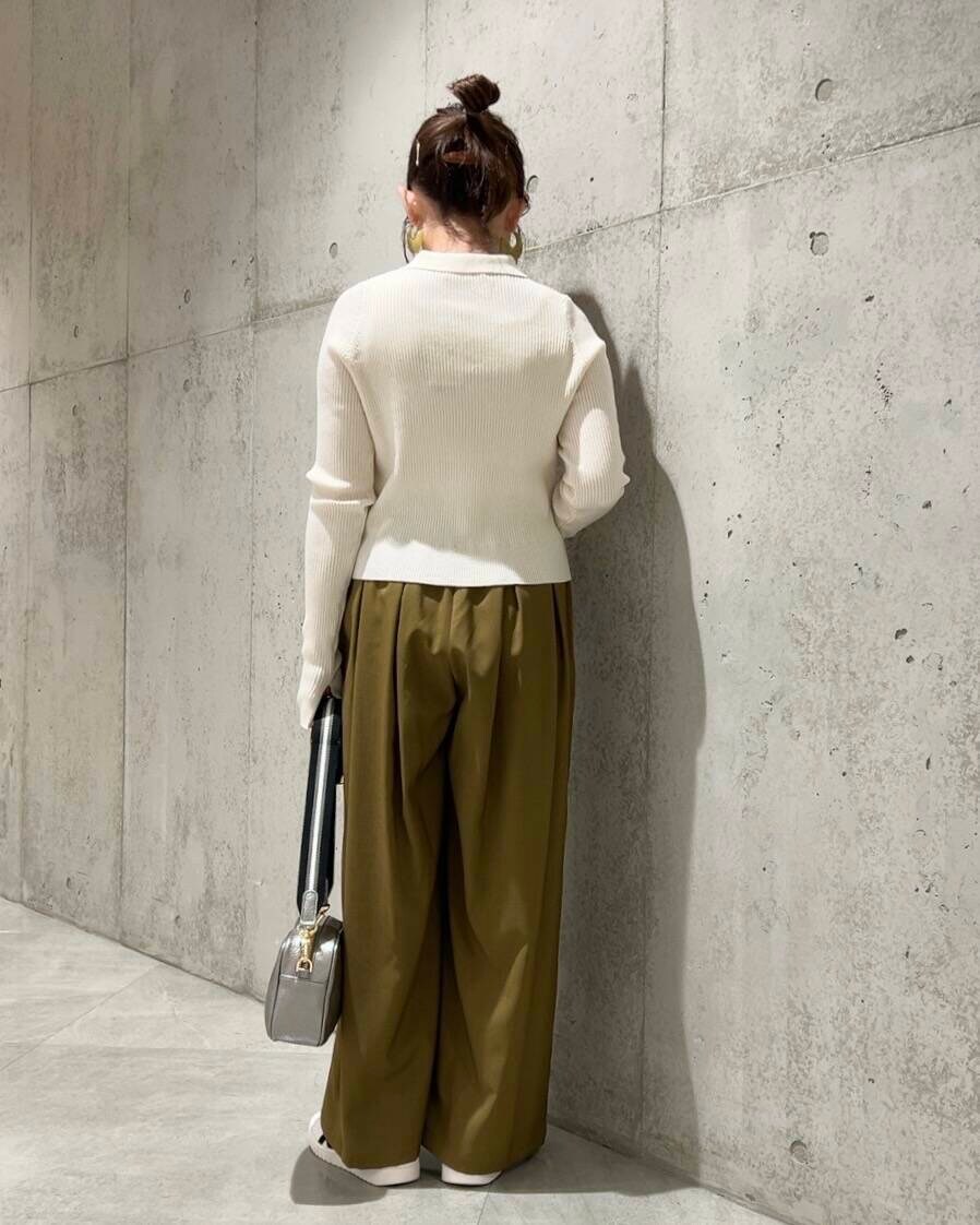 今回は、たっぷりとタックが入ったワイドパンツと合わせました。