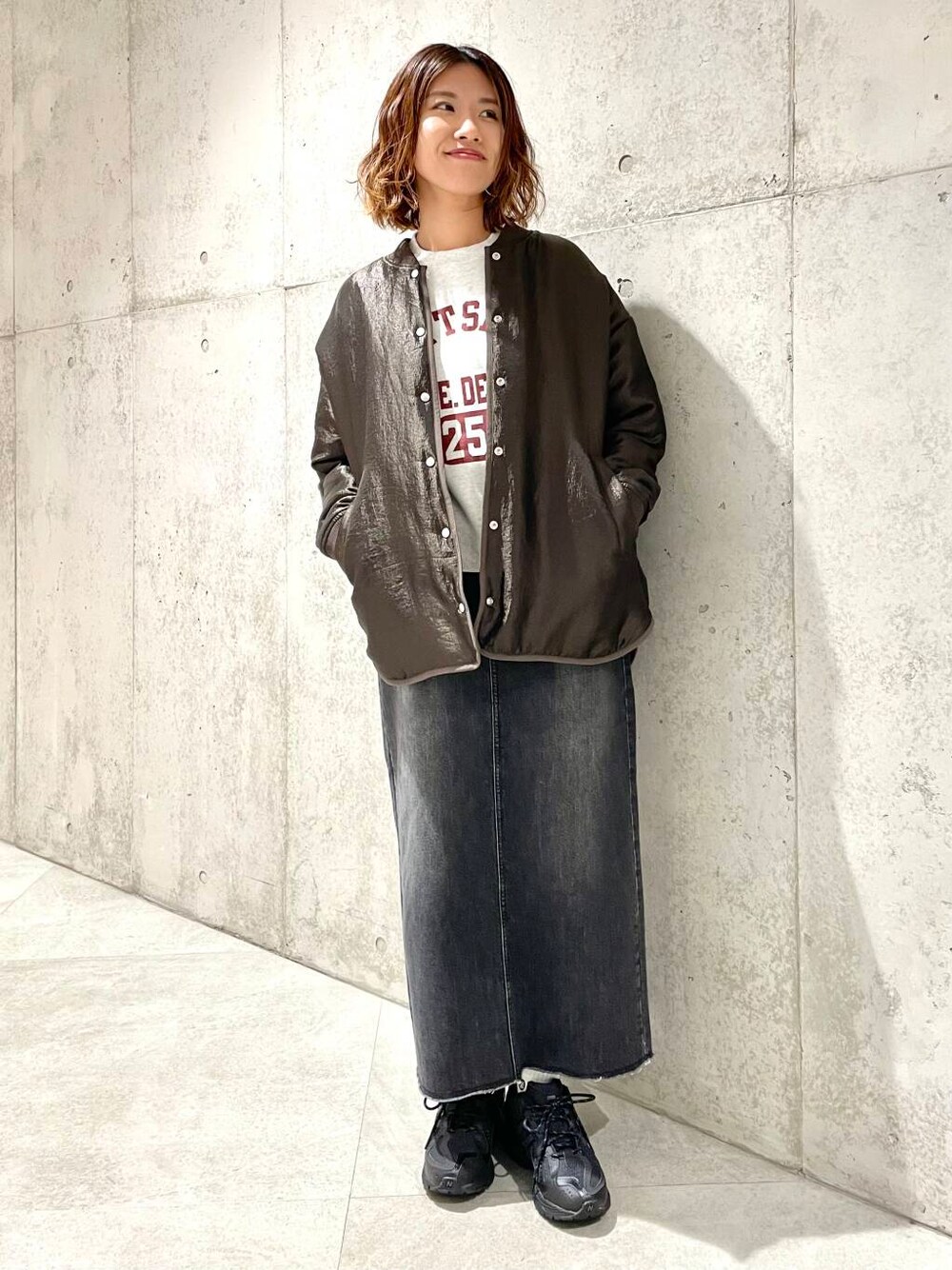 スウェットはコンパクトなのでアウター羽織りやすい&レディライクに合わせやすい!