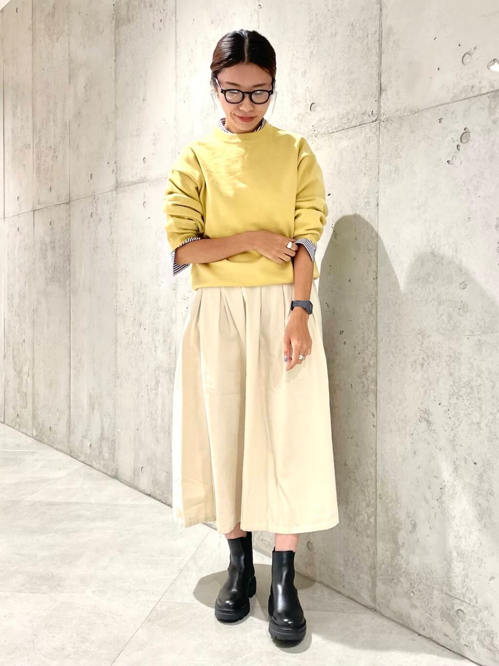 短めなのでショートブーツやハイカットスニーカーを合わせるとバランス取りやすいですよ!
