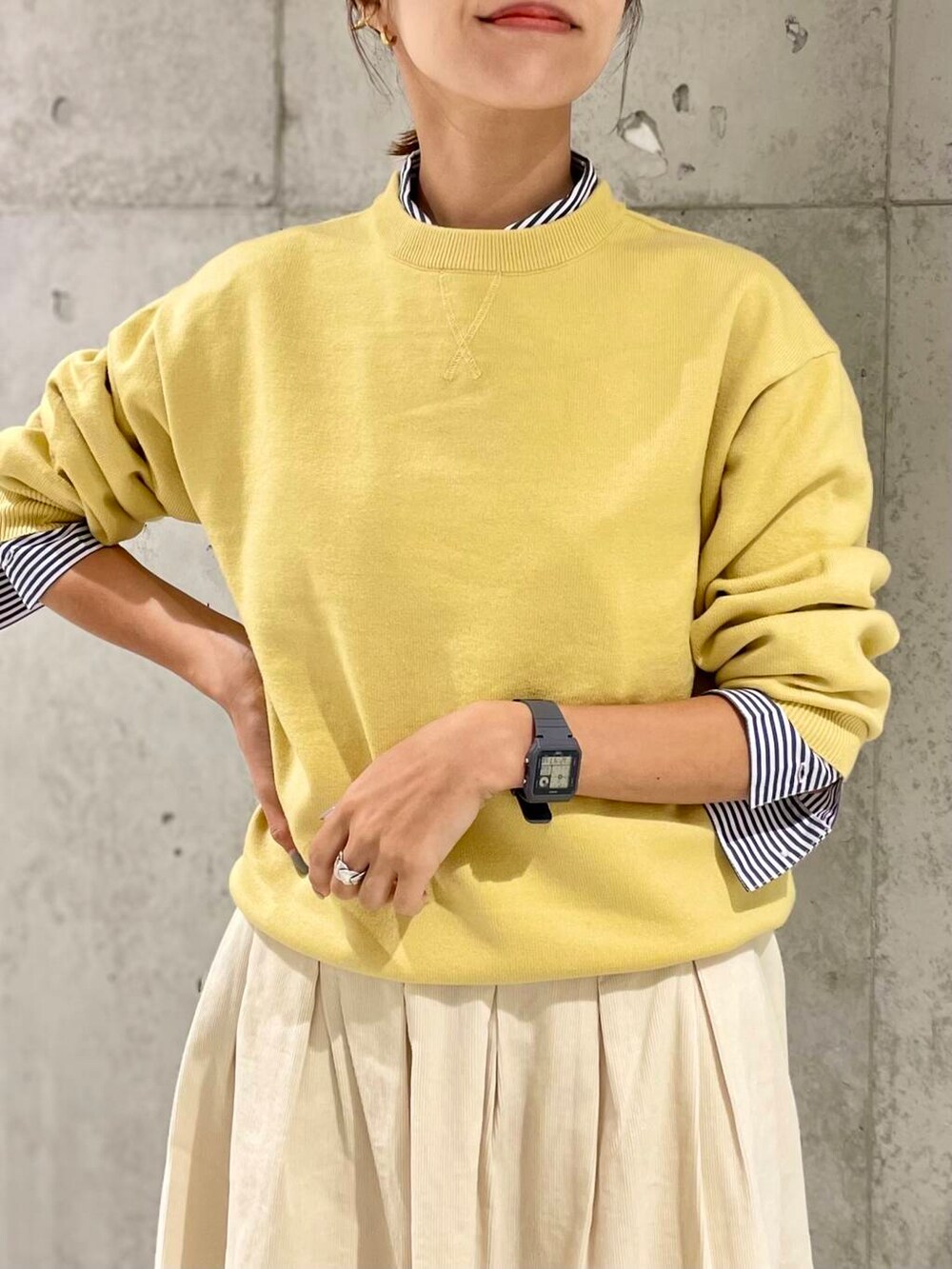 今回はコーデュロイスカートと合わせて大人可愛い印象に。