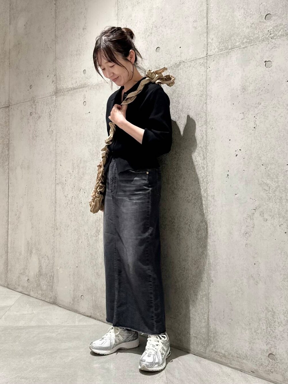 スカートも、ブラックでカラーで落ち着いた印象にまとめてみました。