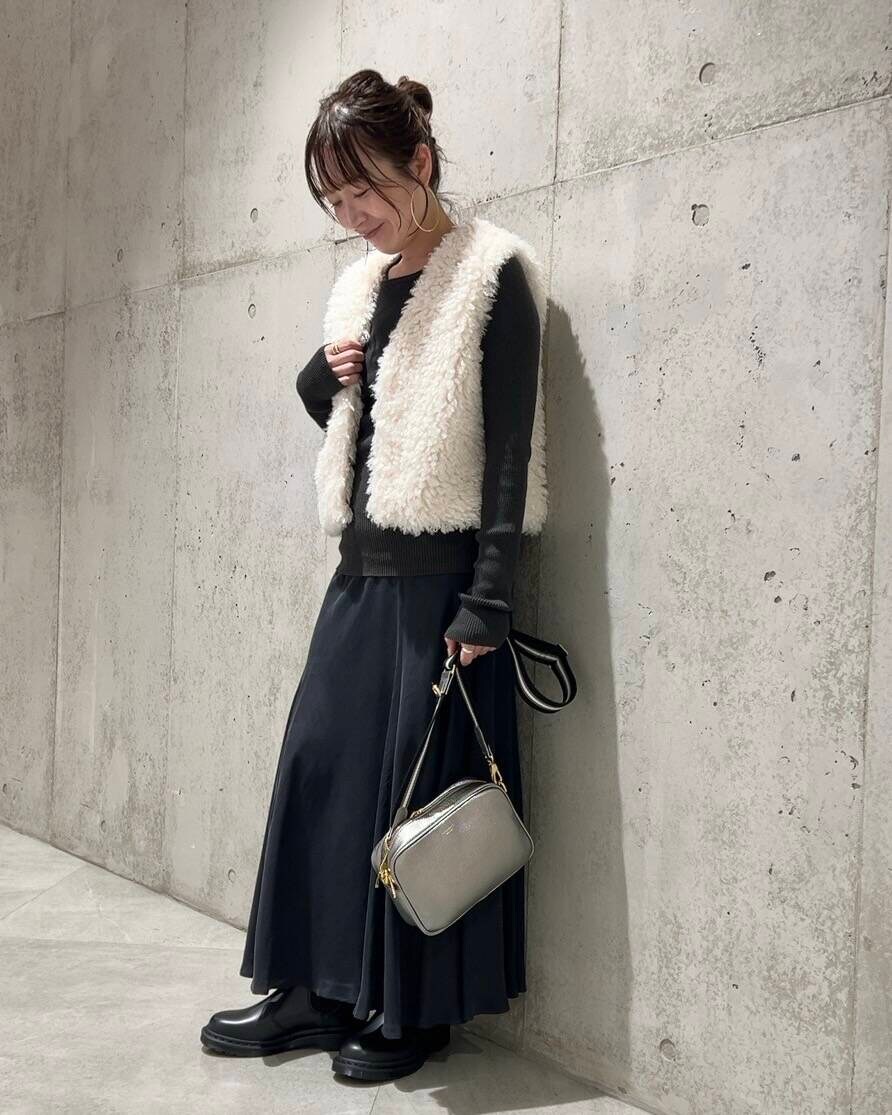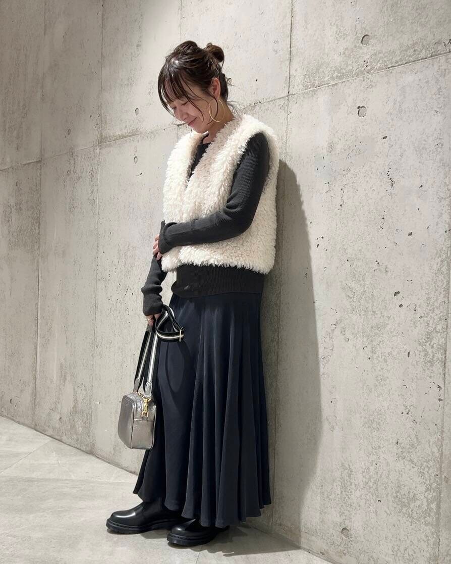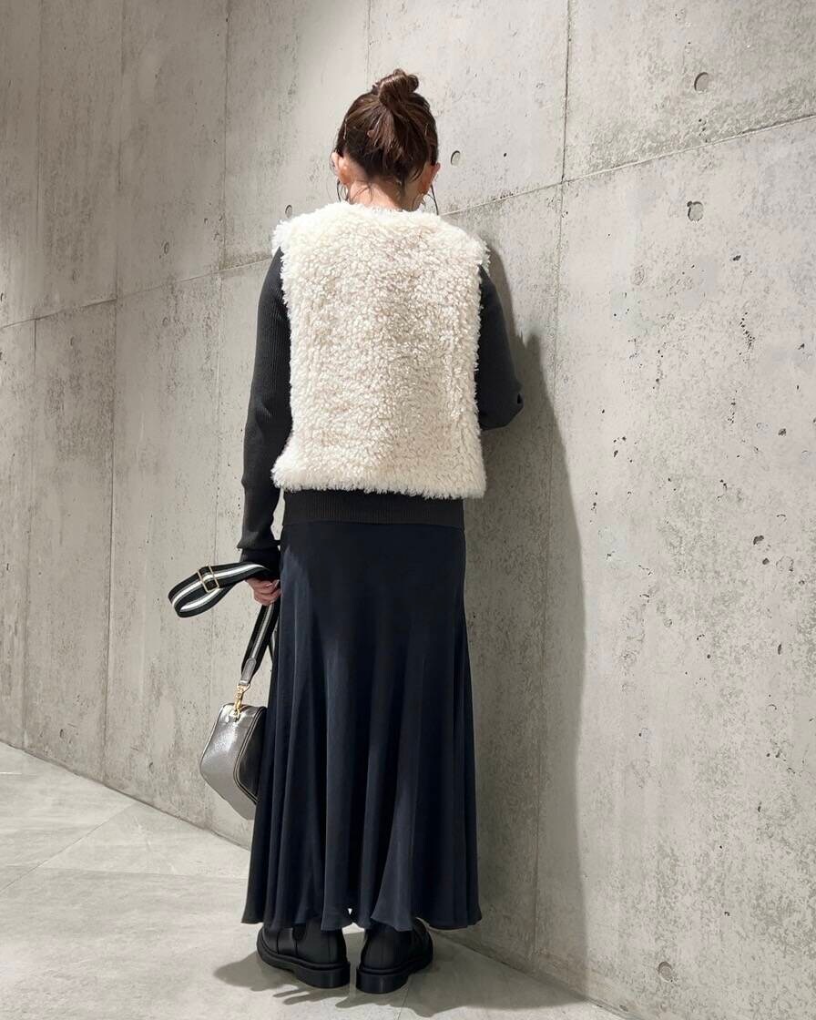 今回は、フレアスカートと合わせて、フェミニンな雰囲気にしてみました。