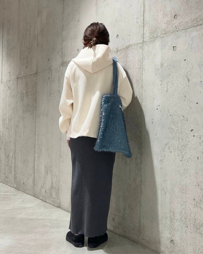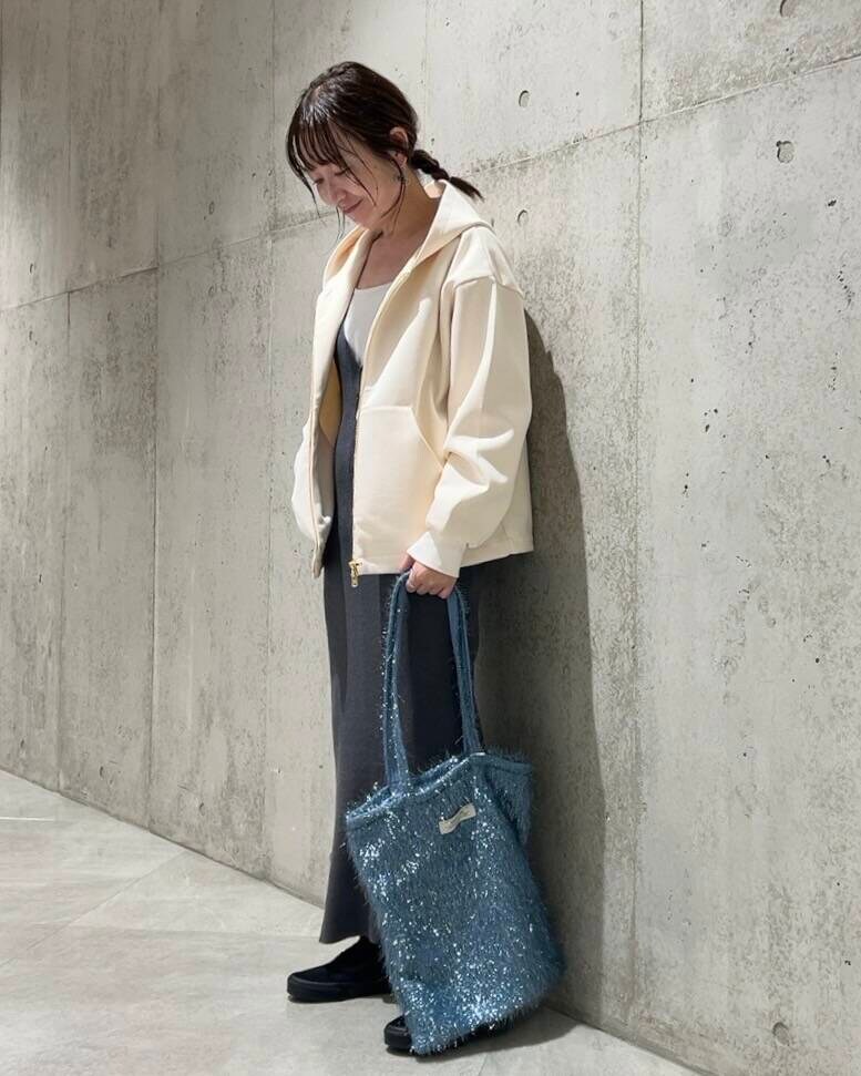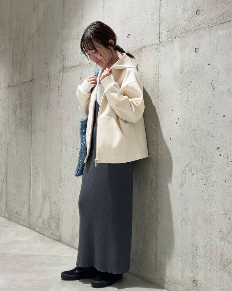 今回は、ニットのキャミワンピースと合わせた、大人カジュアルコーディネート。