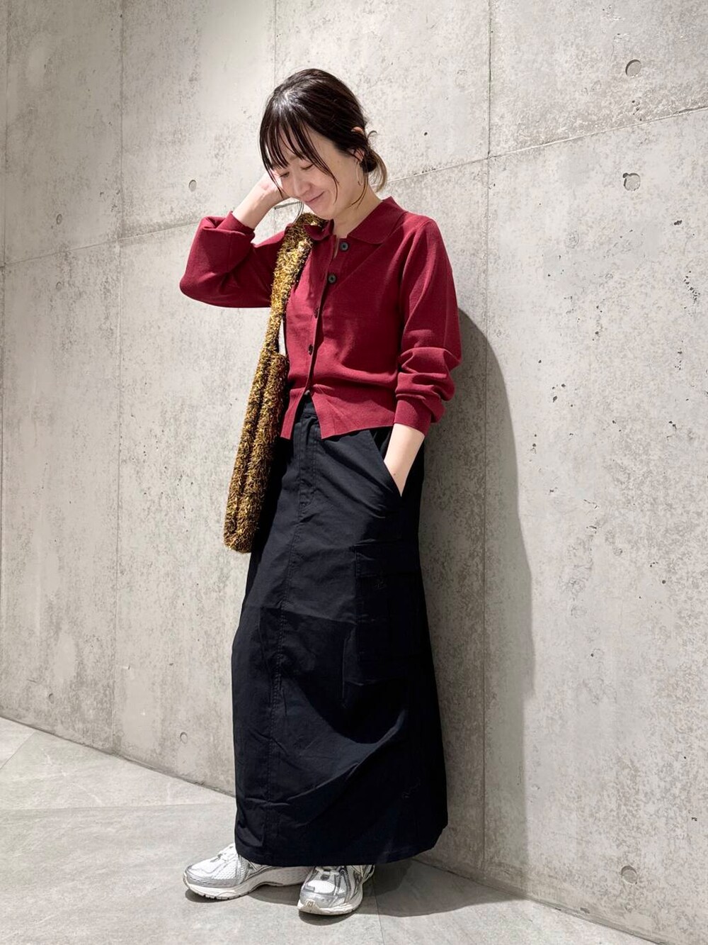 今回は、カーゴスカートを合わせて、大人カジュアルコーディネートです。
