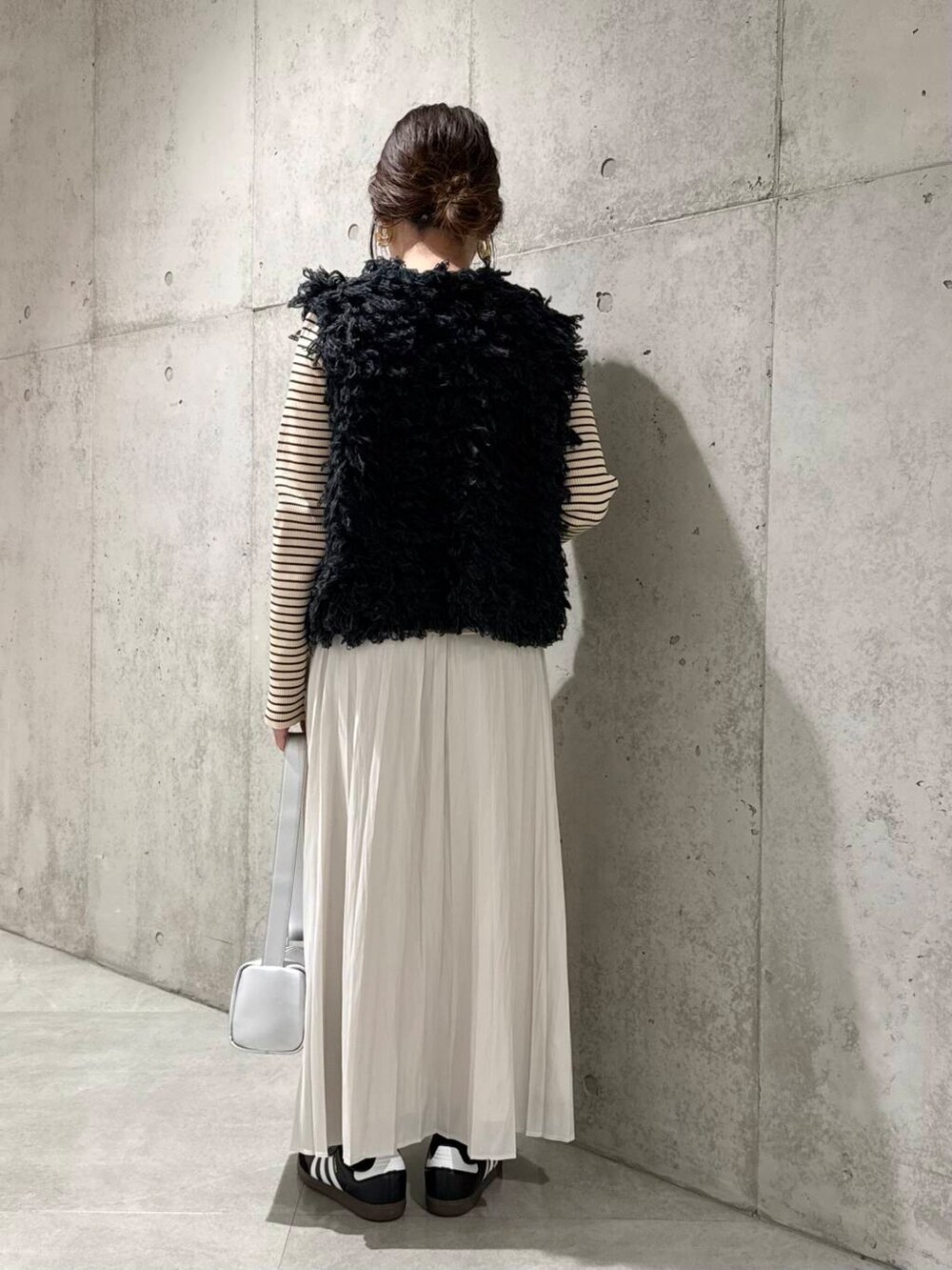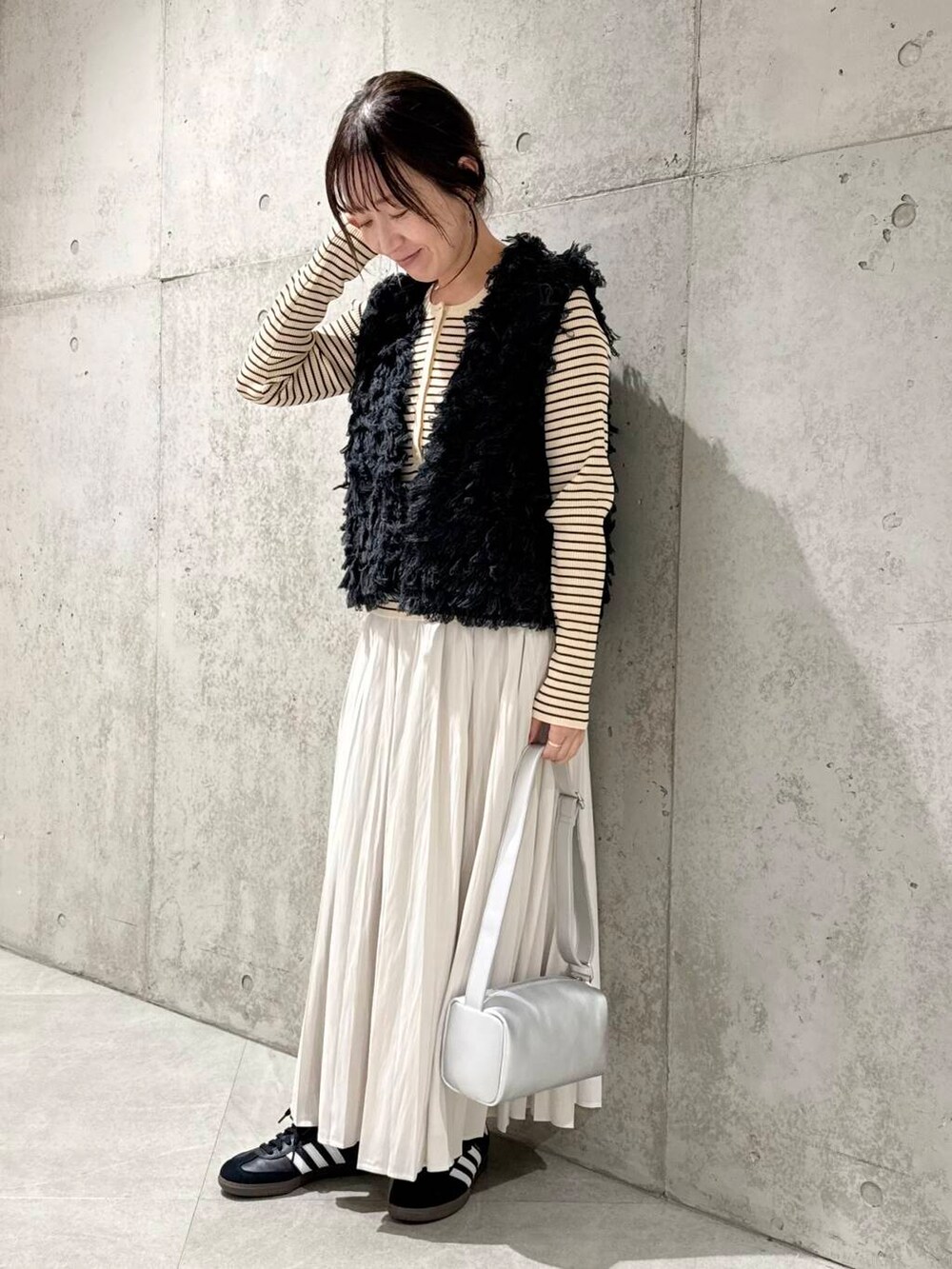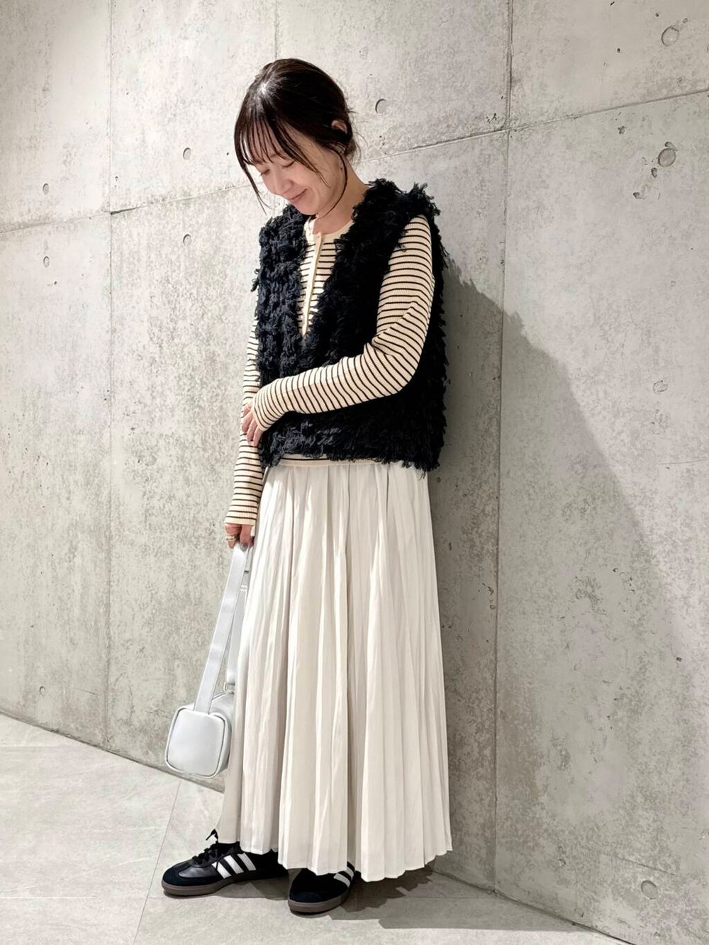 プリーツスカートを合わせて、フェミニンさをプラス。