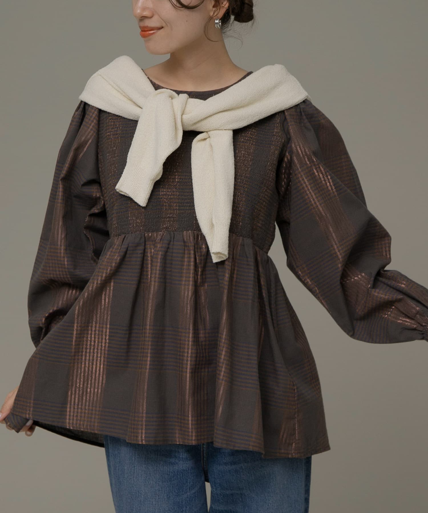 Sonny Labelシャーリングシャイニーチェックブラウス- カラー: