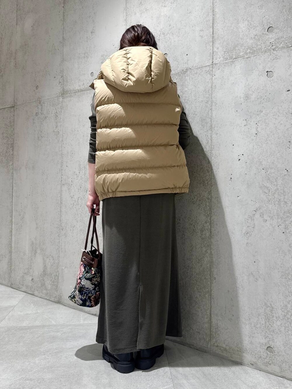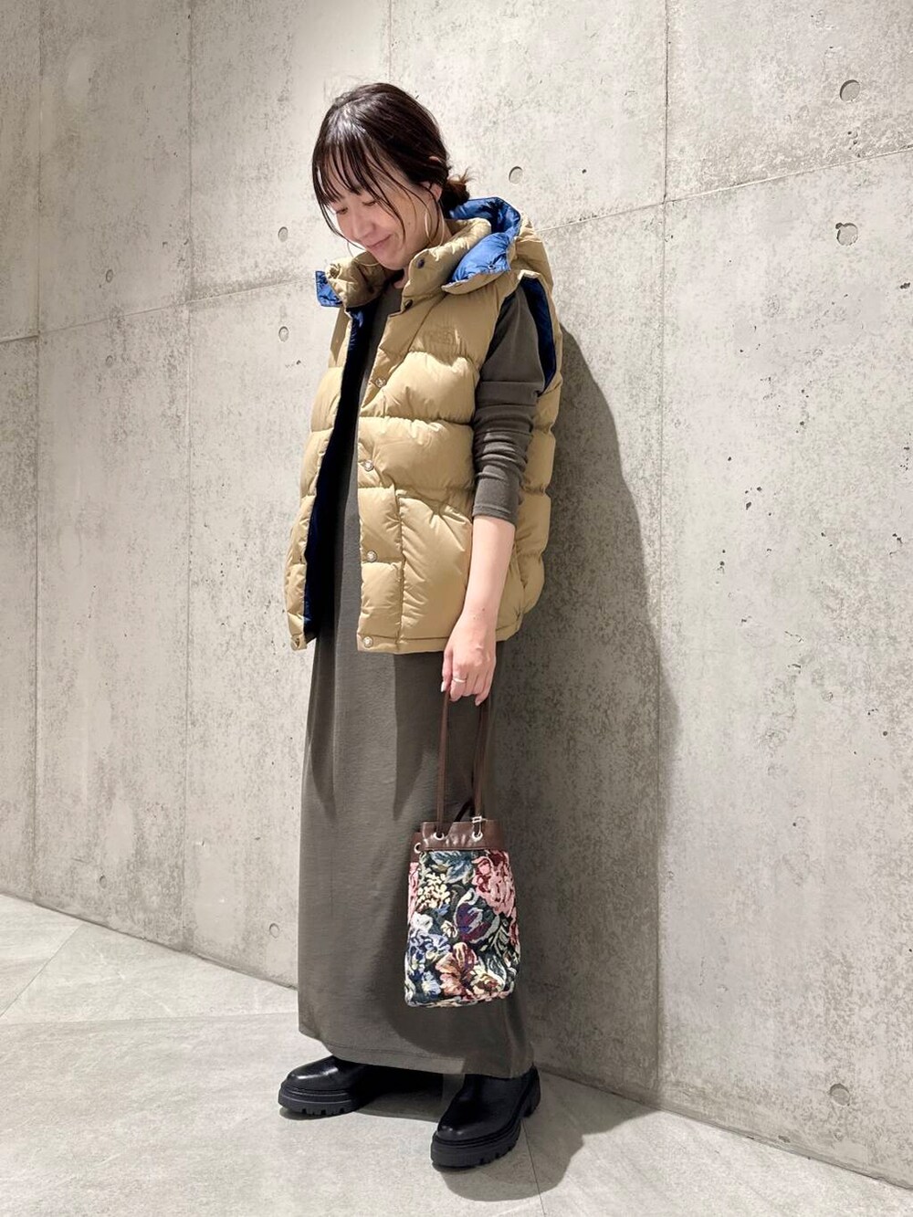 今回は、カーキのワンピースと合わせた、大人カジュアルコーディネート。
