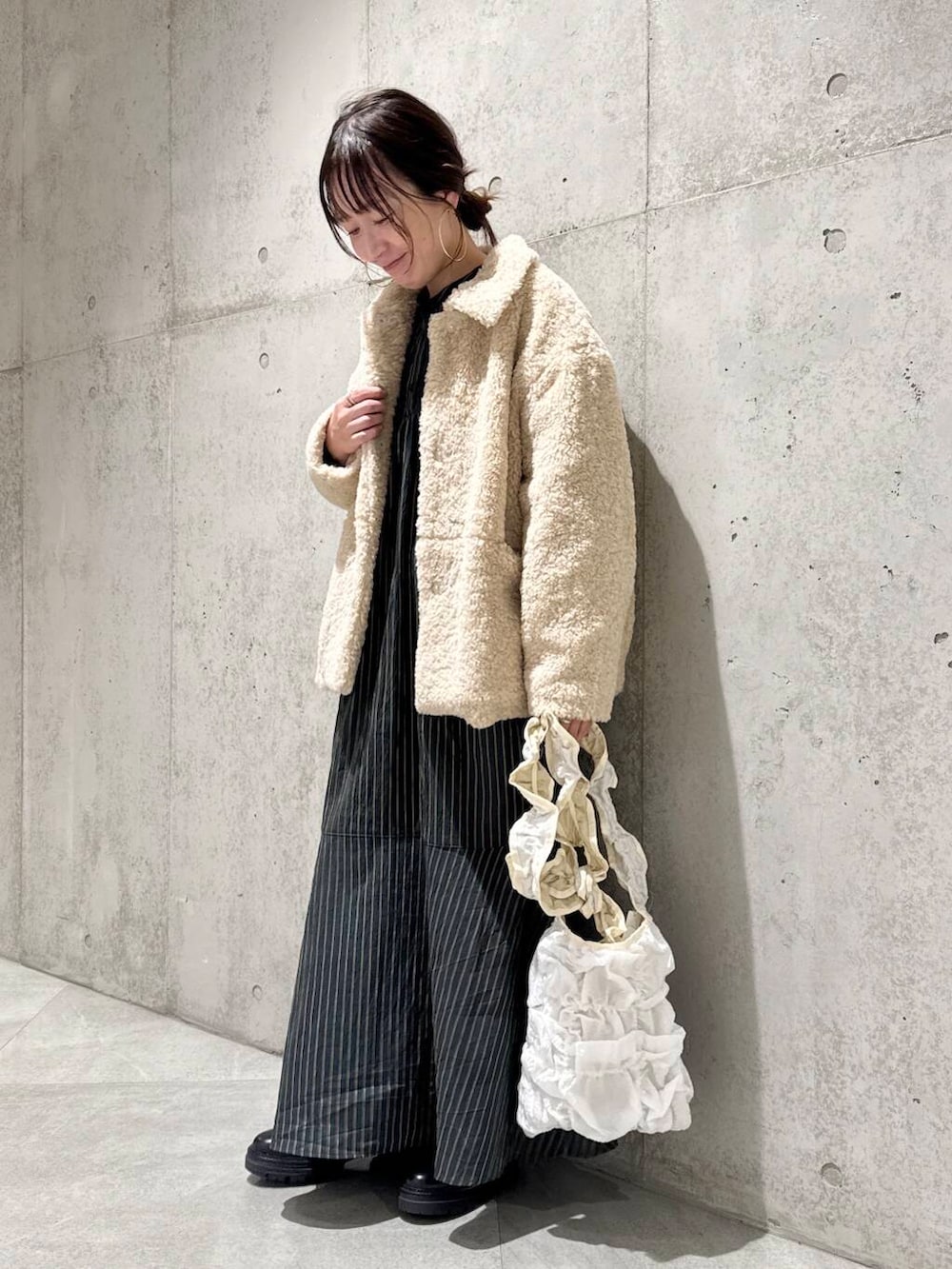今回は、ストライプ柄のワンピースと合わせてみました。