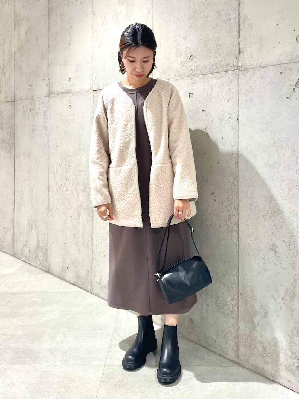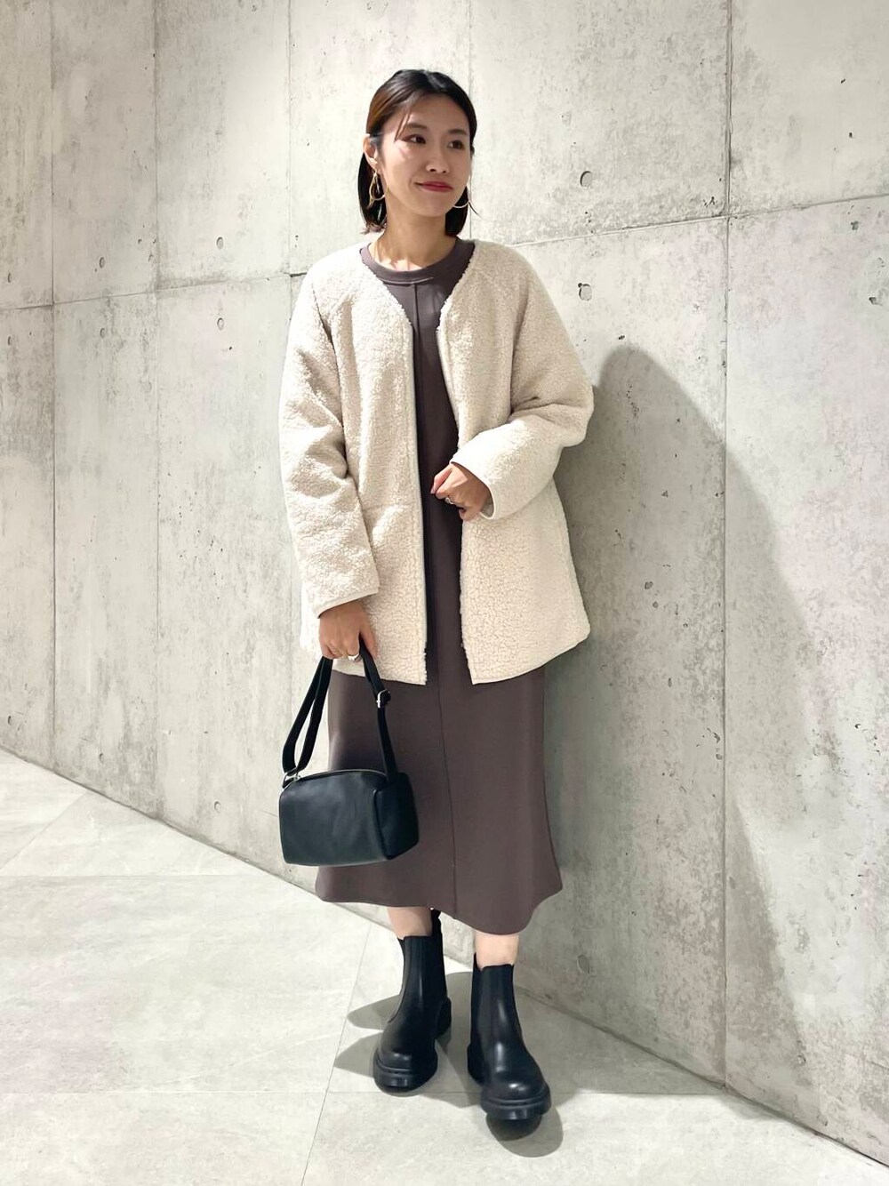 ショートブーツとボアアウターを合わせればちょっとしたお出かけコーデになります。