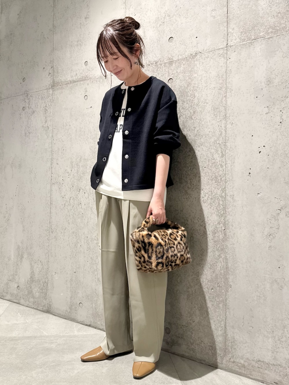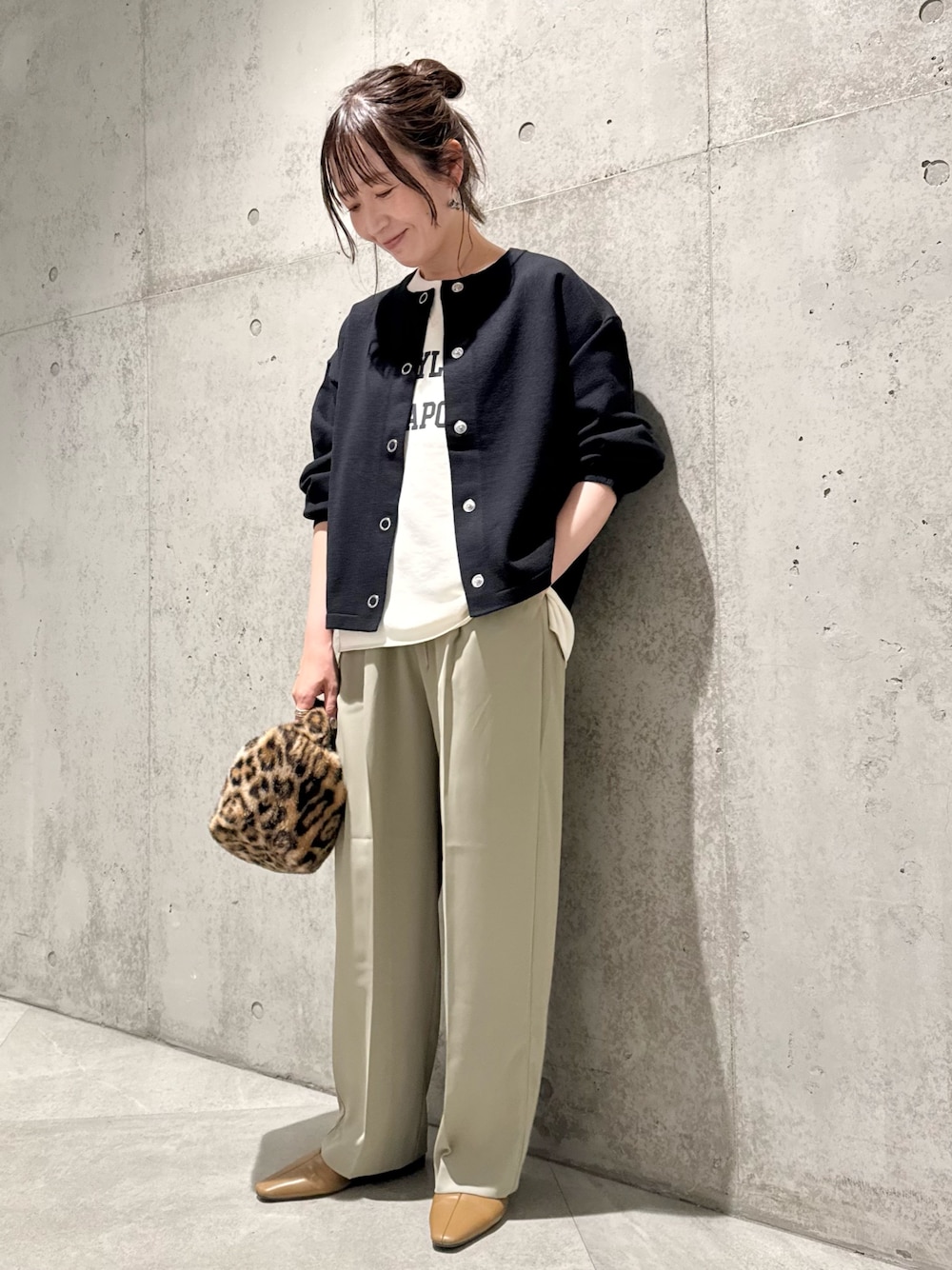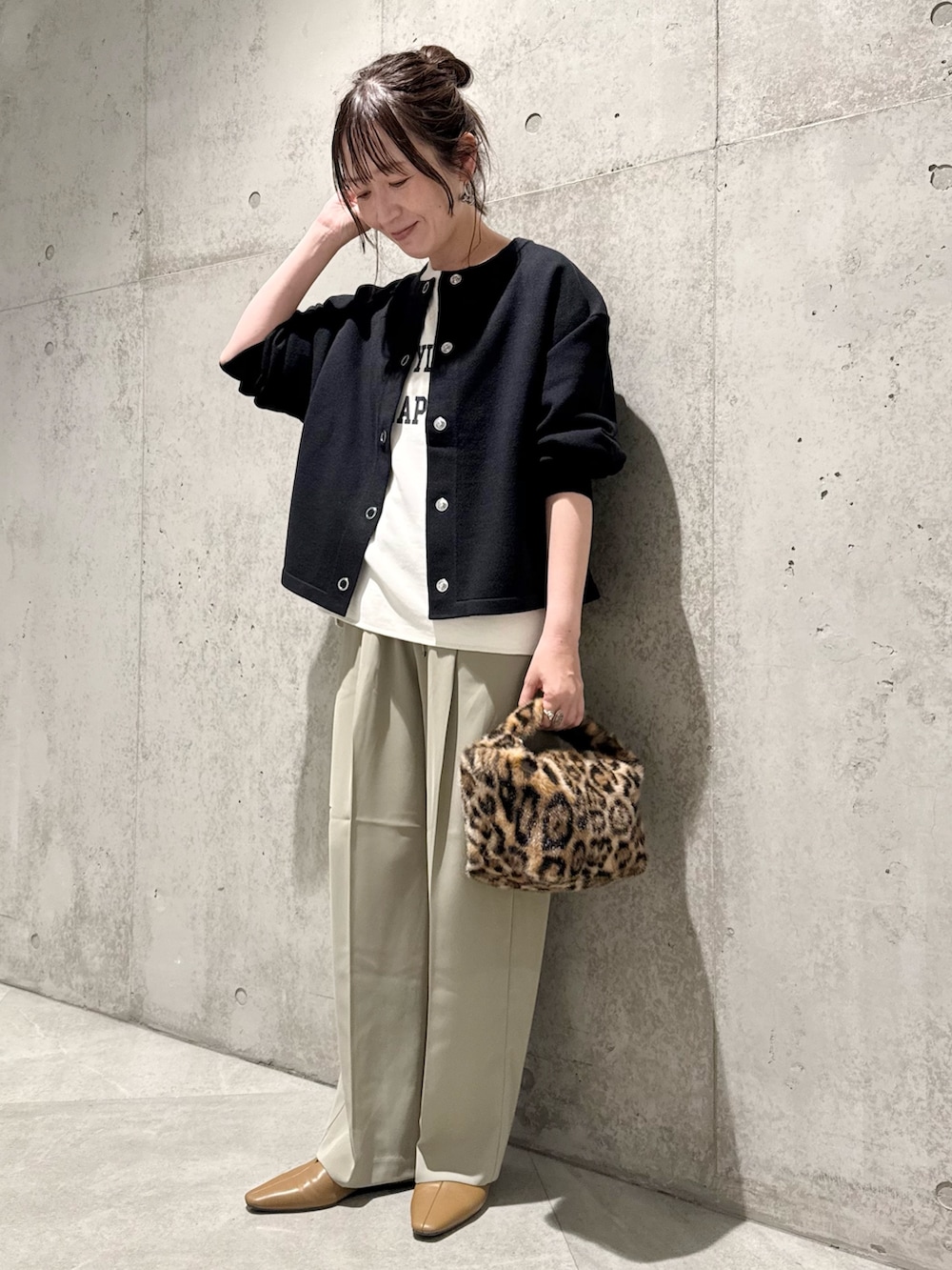 今回は、スッキリとしたパンツと合わせ、きれいめカジュアルコーディネート。