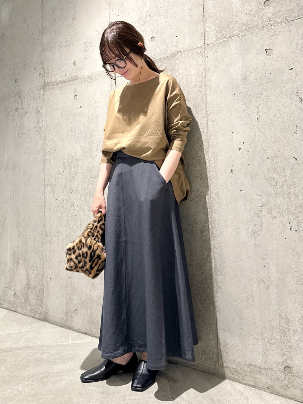 今回は、今季おすすめの完声スカートと合わせた、きれいめカジュアルコーディネート。