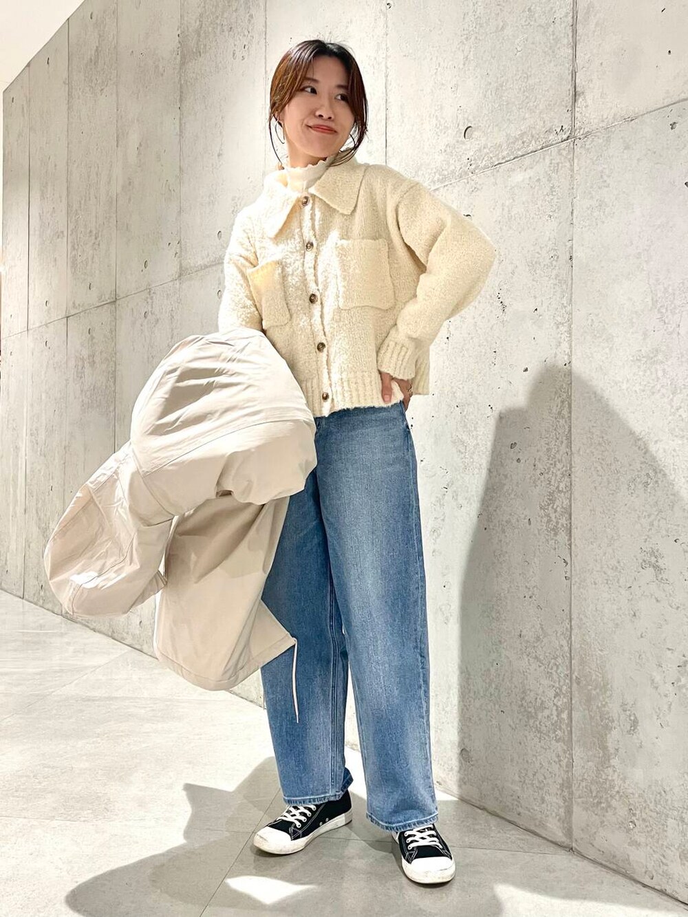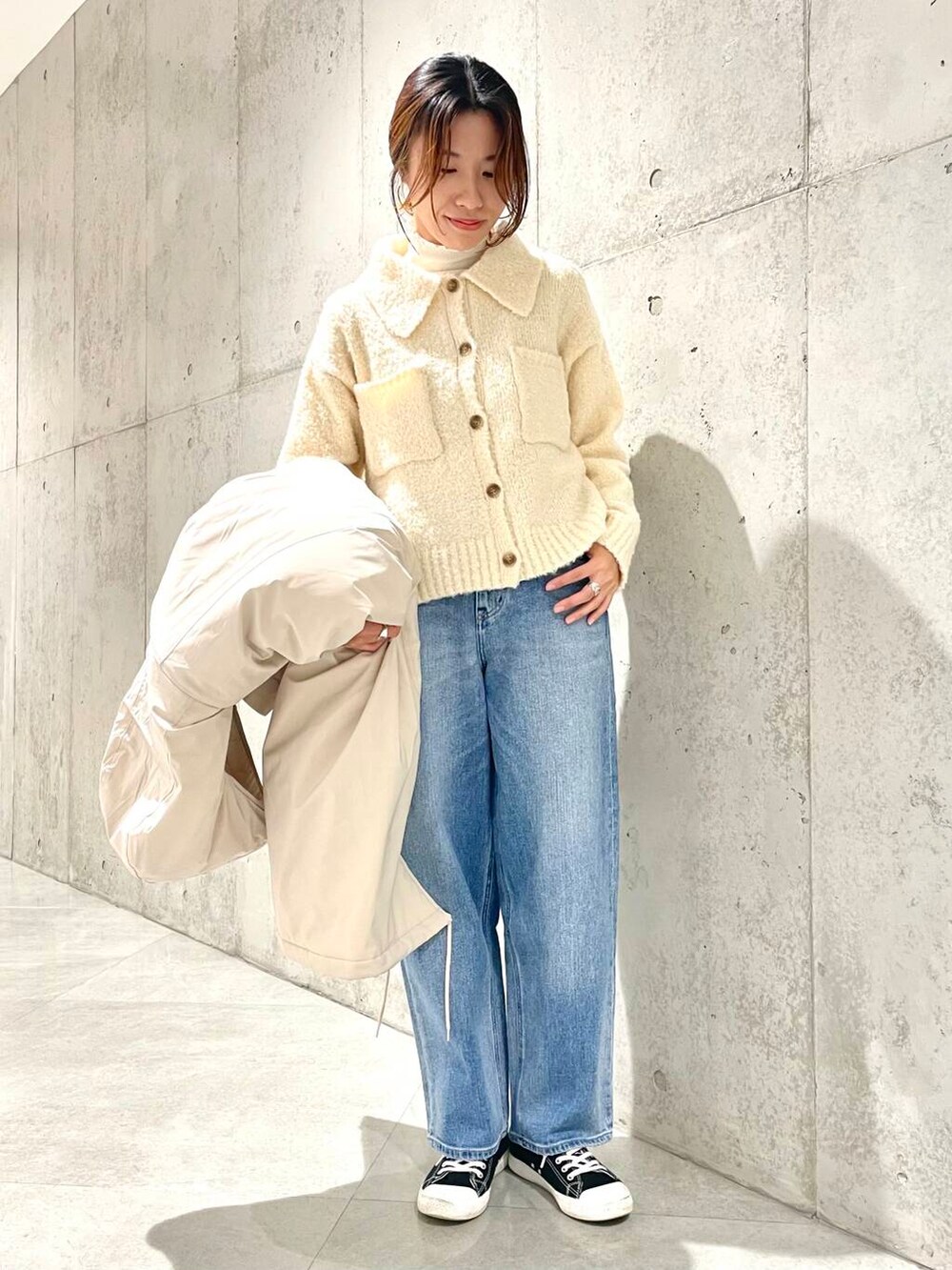 襟付きのニットシャツはもちもち素材で温かい!
