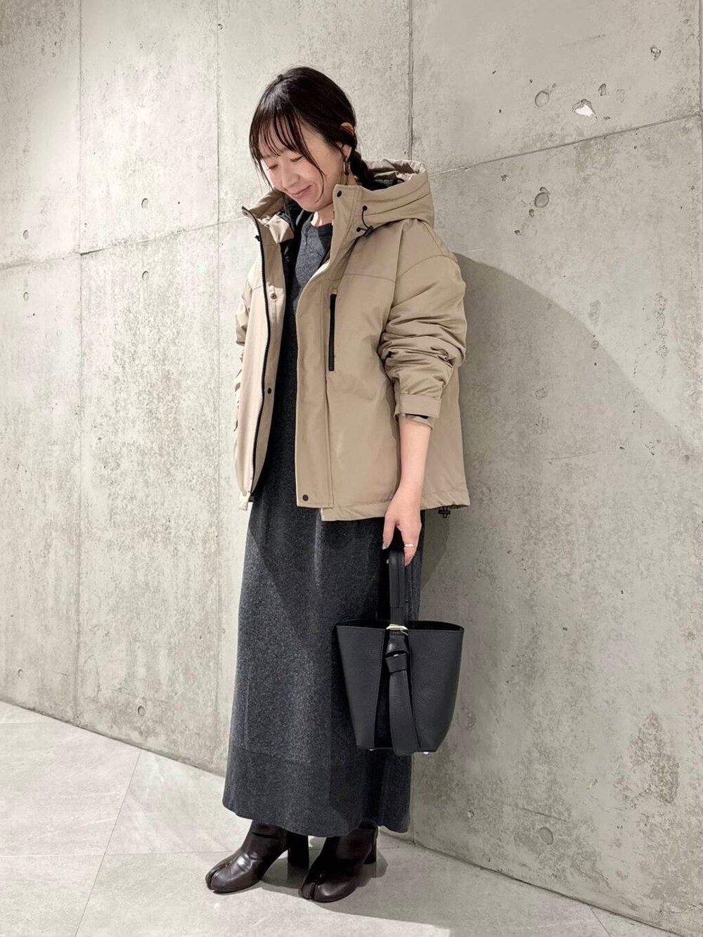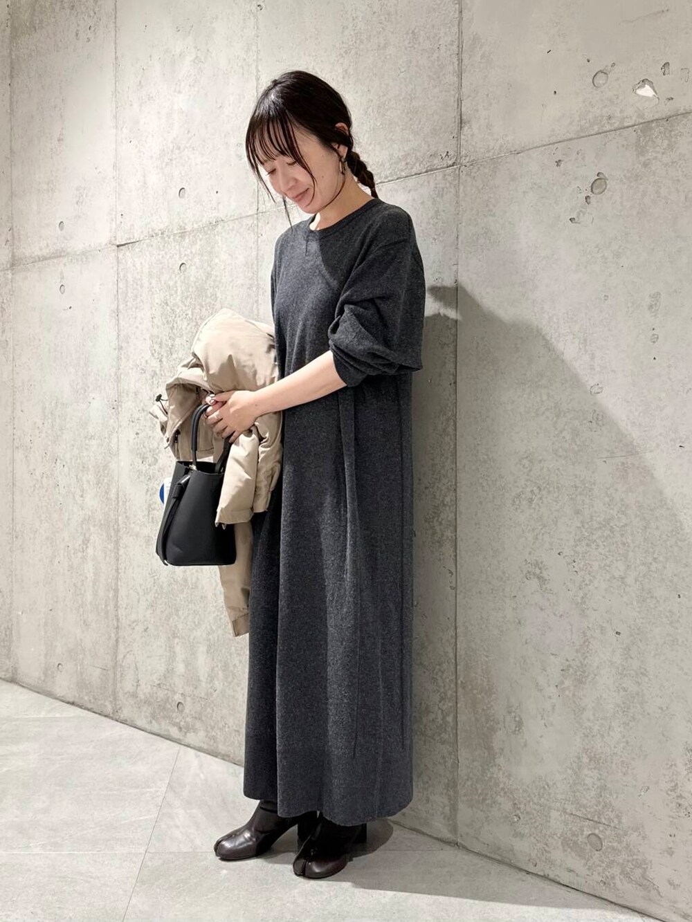 今回は、シンプルに、ニットワンピースと合わせた、大人カジュアルコーディネートです。