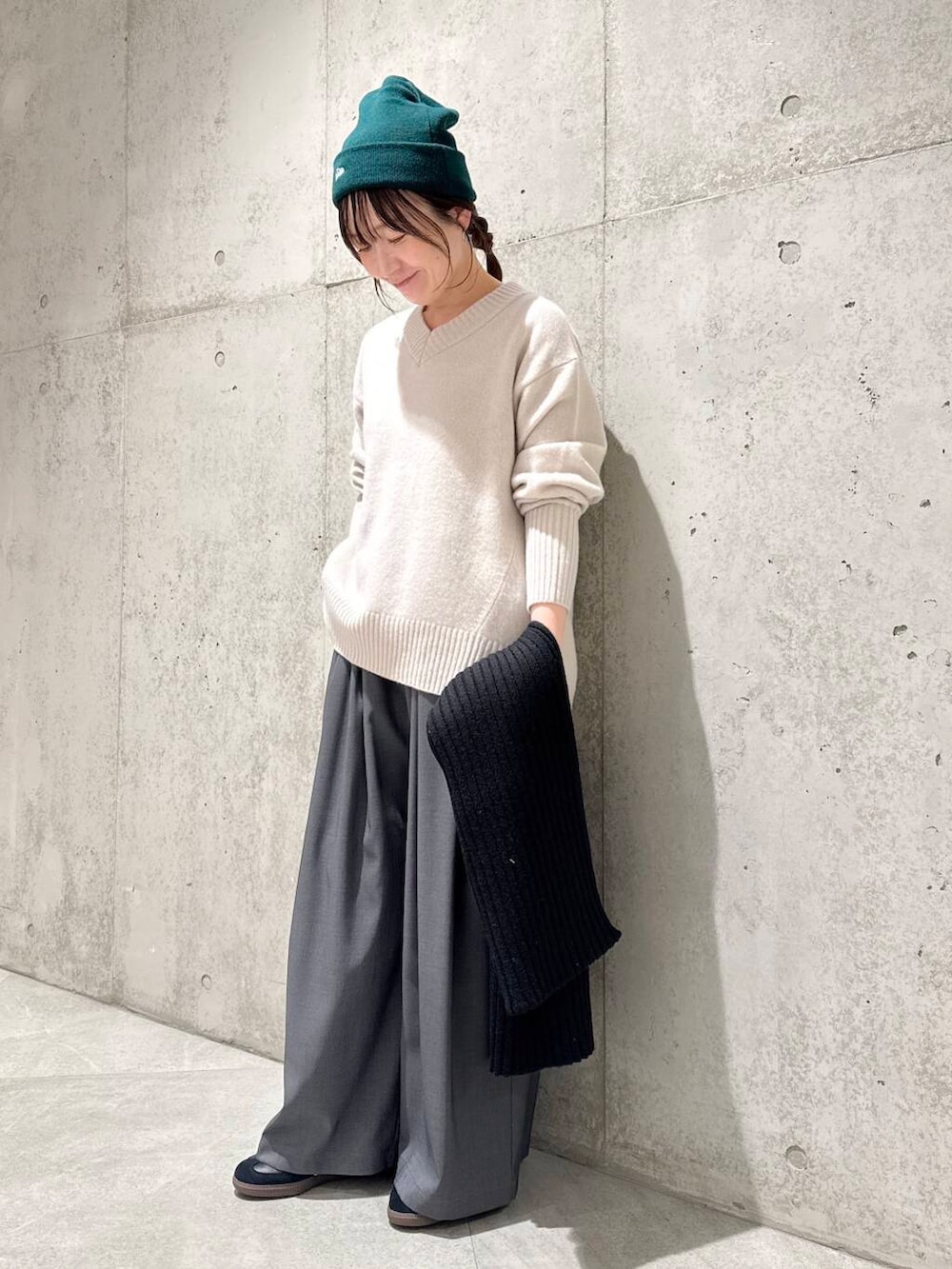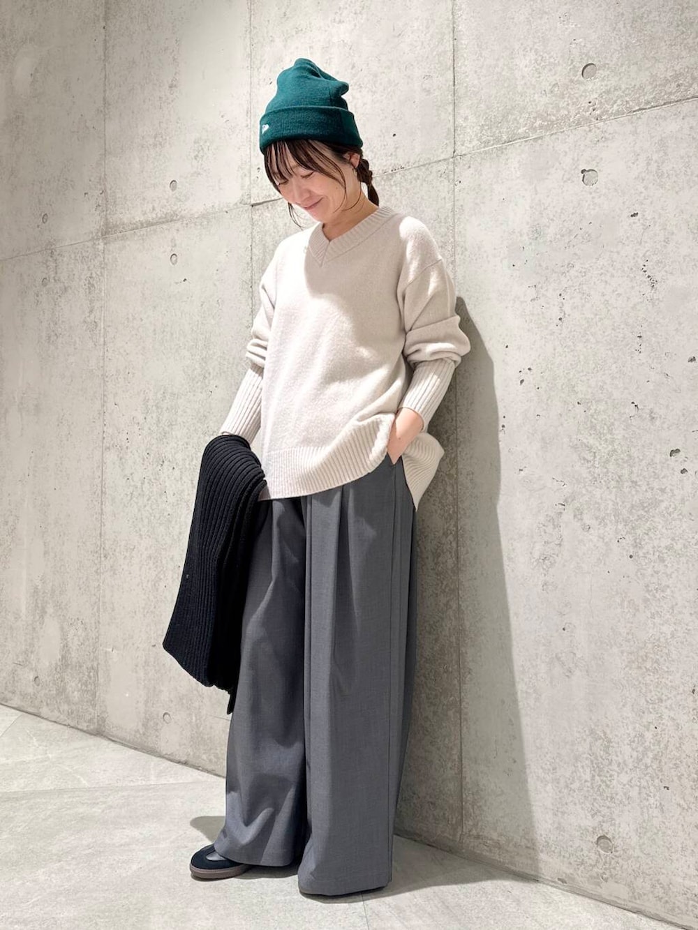 今回は、ロングシーズン穿いていただける、人気のワイドパンツを合わせた、大人スタイルです。