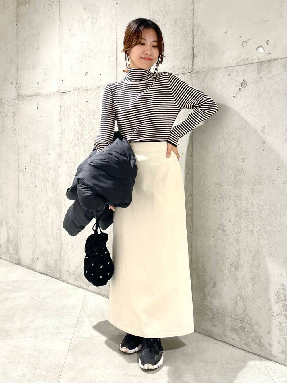 膝裏あたりまでバックスリットが入っているので、防寒の意味でもこれからの時期はロングブーツ合わせもおすすめですよ^ ^