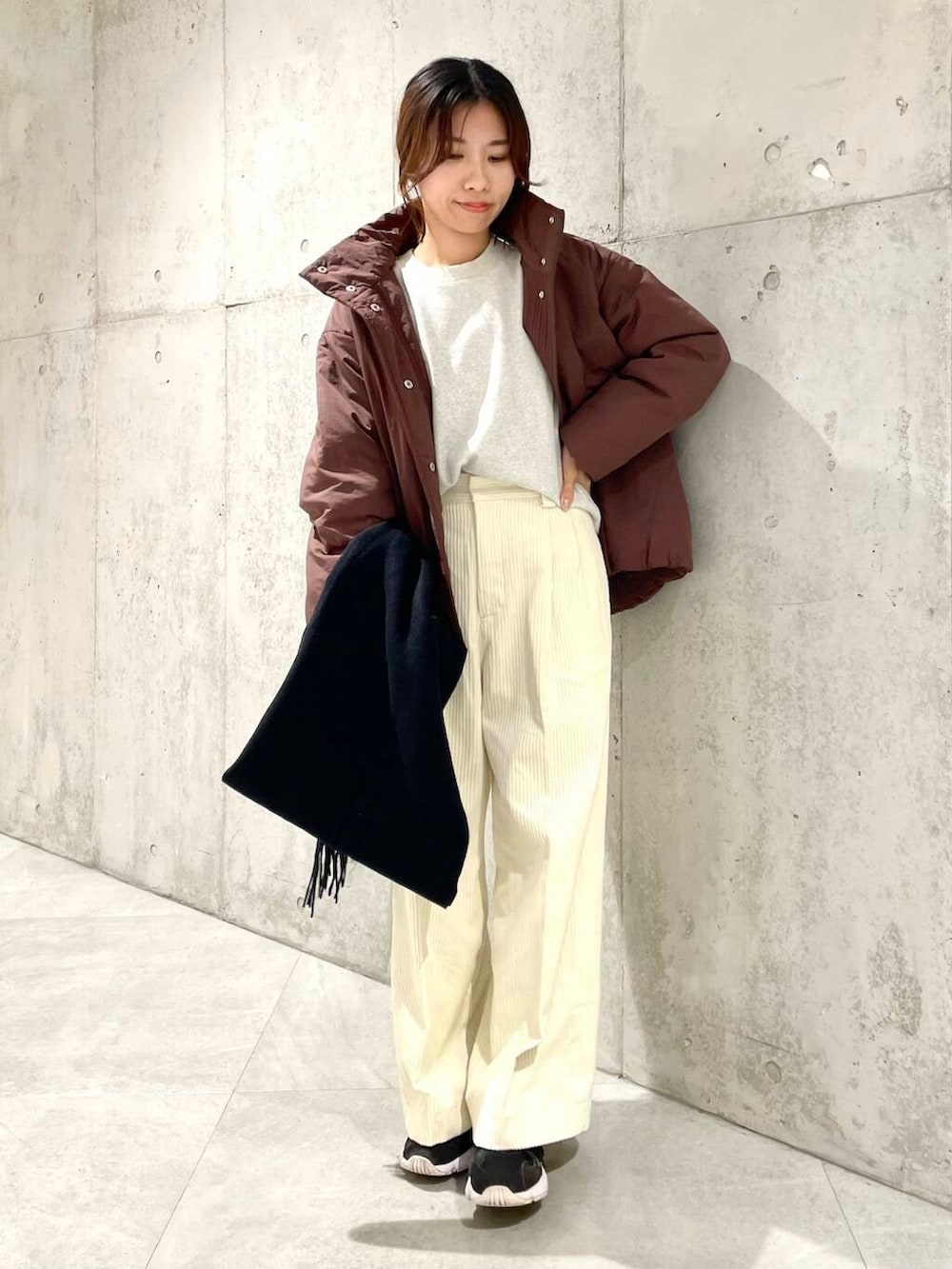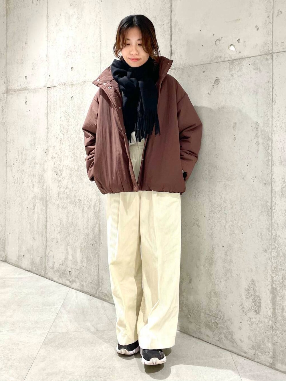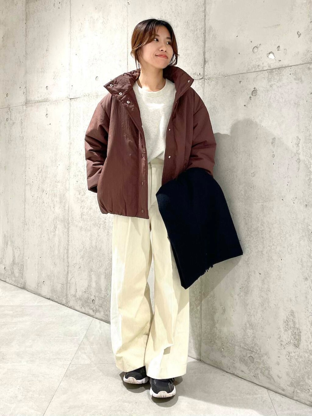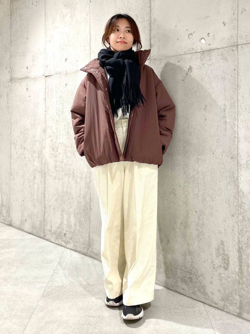 赤みbrownが可愛い中綿ジャケットをプラス。