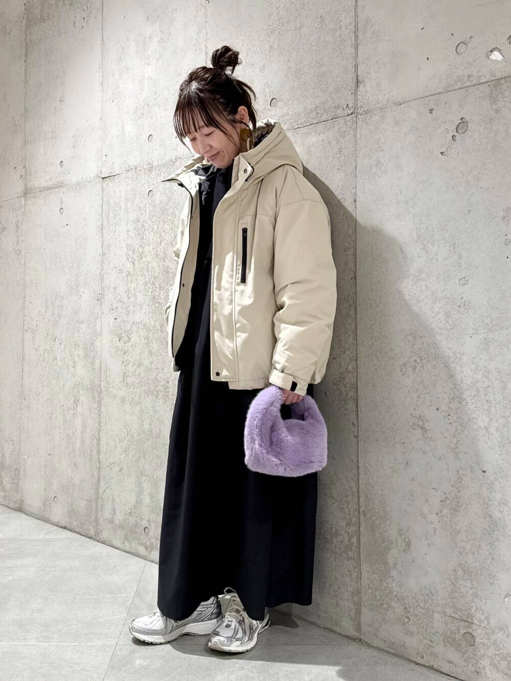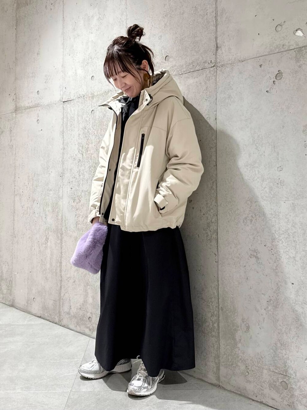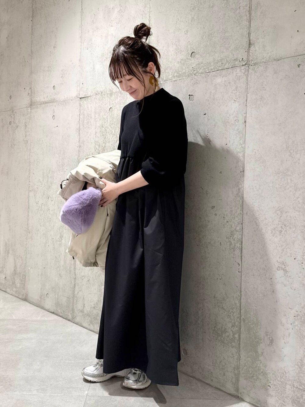 今回は、スカート部分のドッキングがおしゃれな、ニットワンピースと合わせた、大人カジュアルコーディネートです。