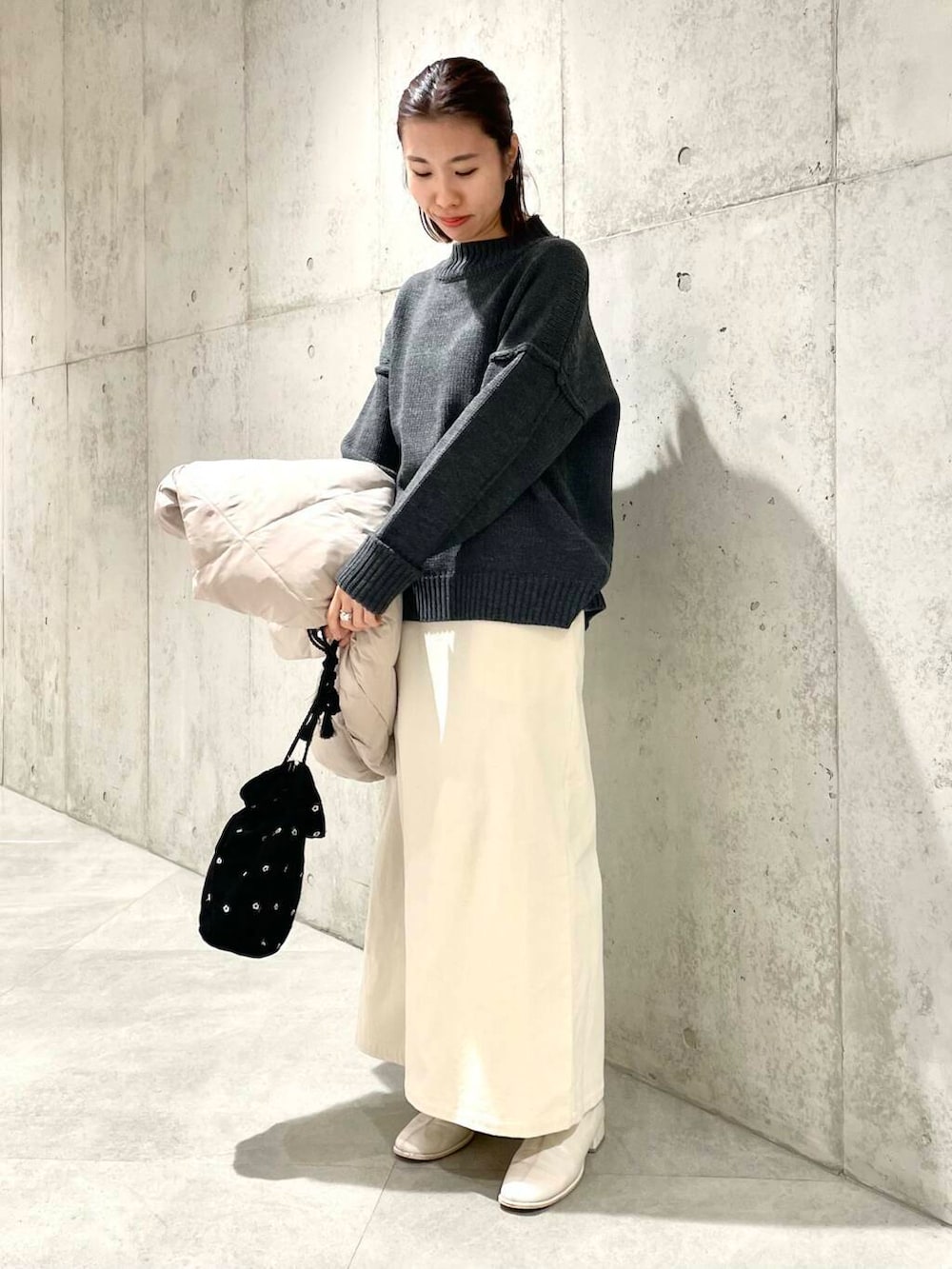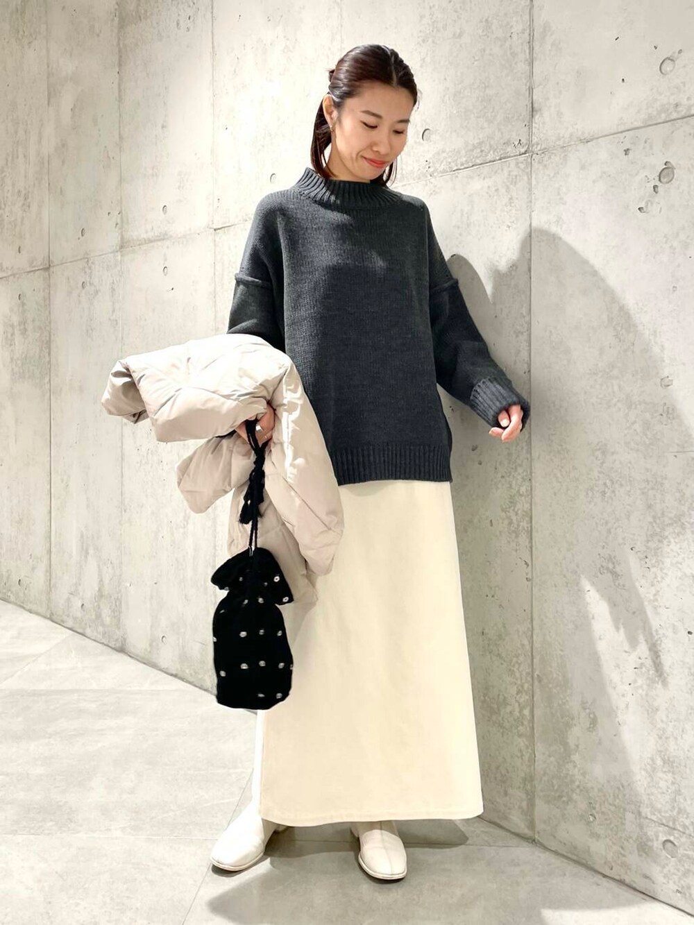 ニットの首元はモックネックなので、ファンデが付く心配が無くストレスフリーです。