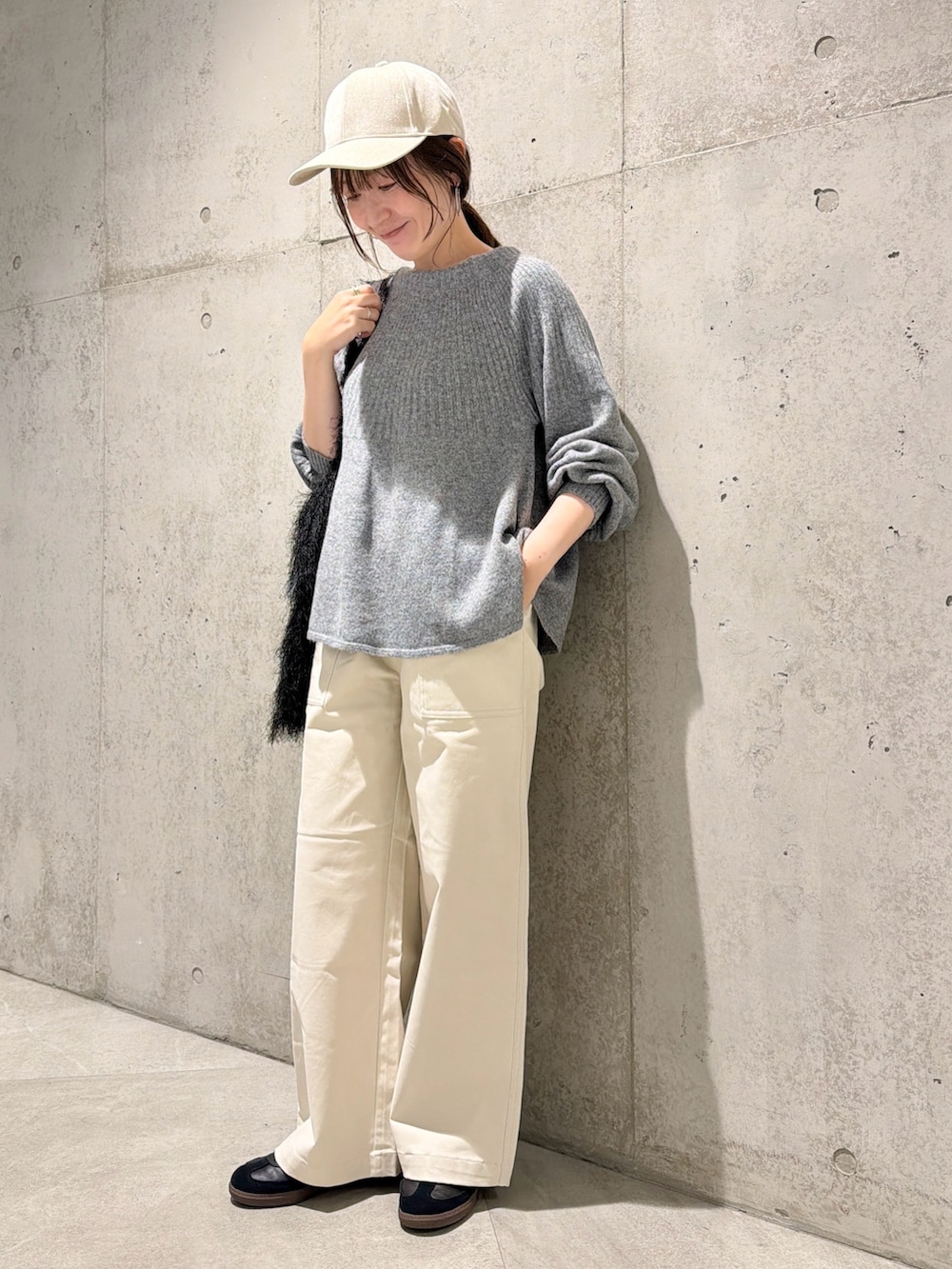 今回は、ホワイトのベイカーパンツを合わせて、淡色でまとめてみました。