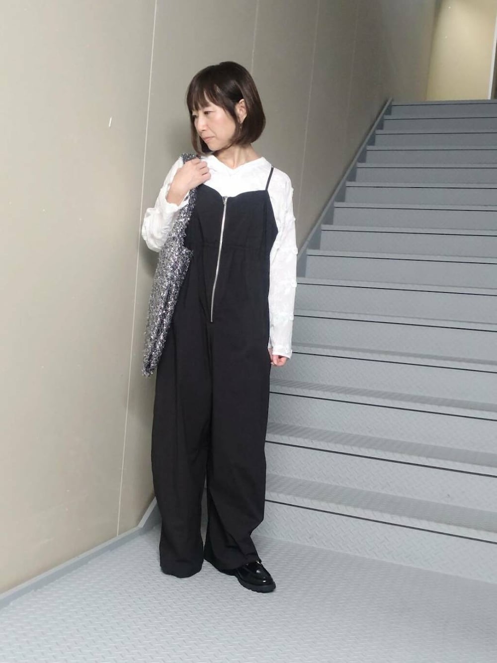ブラウスは着丈が短めですが、身幅がそれなりにあるので、サロペットのインナーにはもちろんワイドパンツやロングスカートにも合わせやすいです!