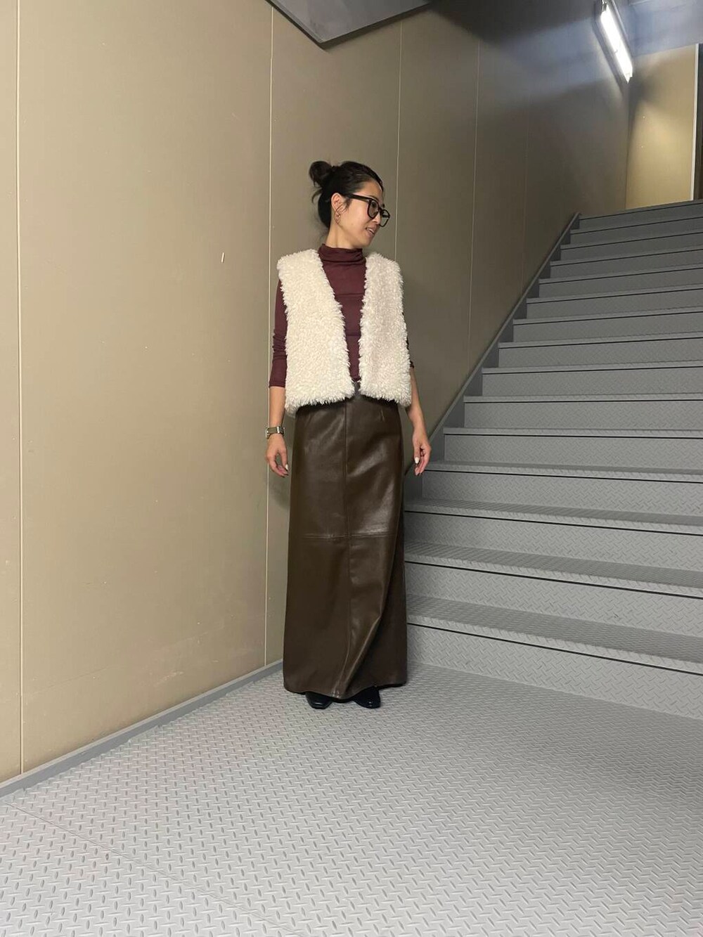 新作で入ってきたレザースカートは丈が長めでストンと落ちるのでスタイル良く足長効果に◎